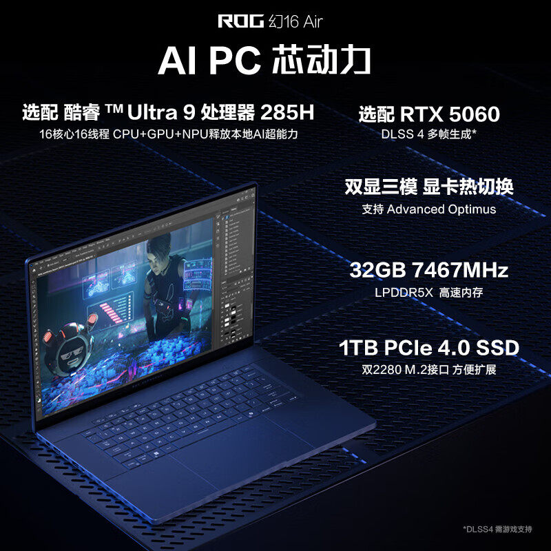 Air 2025酷睿U9 16英寸轻薄游戏笔记本电脑 2.5K ROG幻16 RTX50系列显卡 240Hz 自营