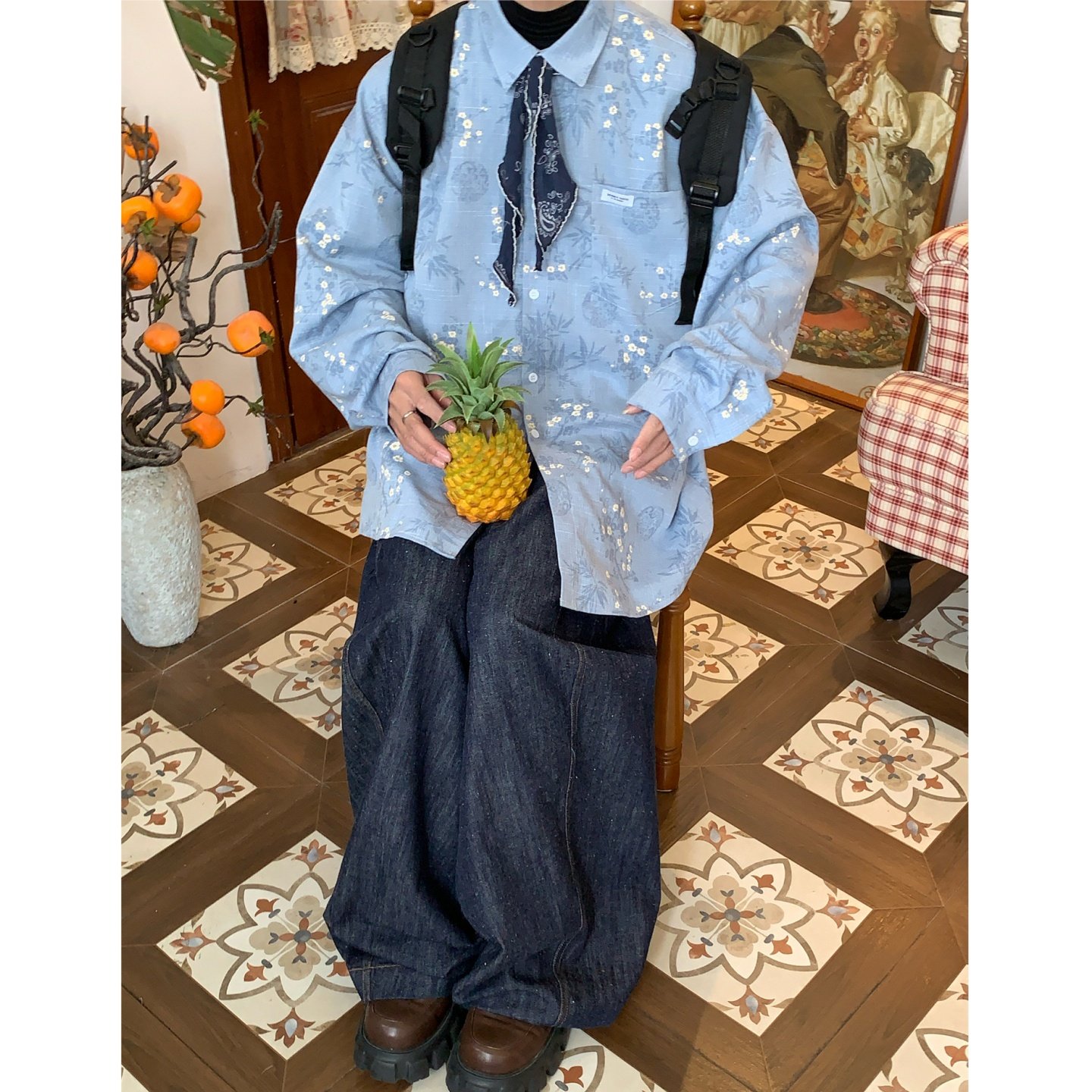 2025新款 C2自制 男女同款 复古衬衫 设计感小众上衣潮 花卉满印中式