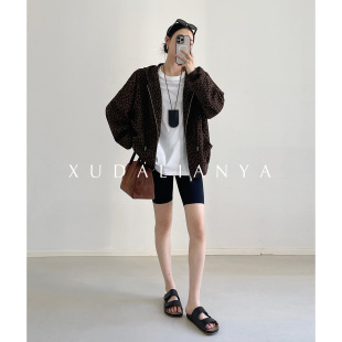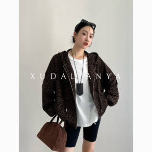 徐大脸吖定制 棒球服秋韩系休闲豹纹连帽短外套女 波嬉风复古美式