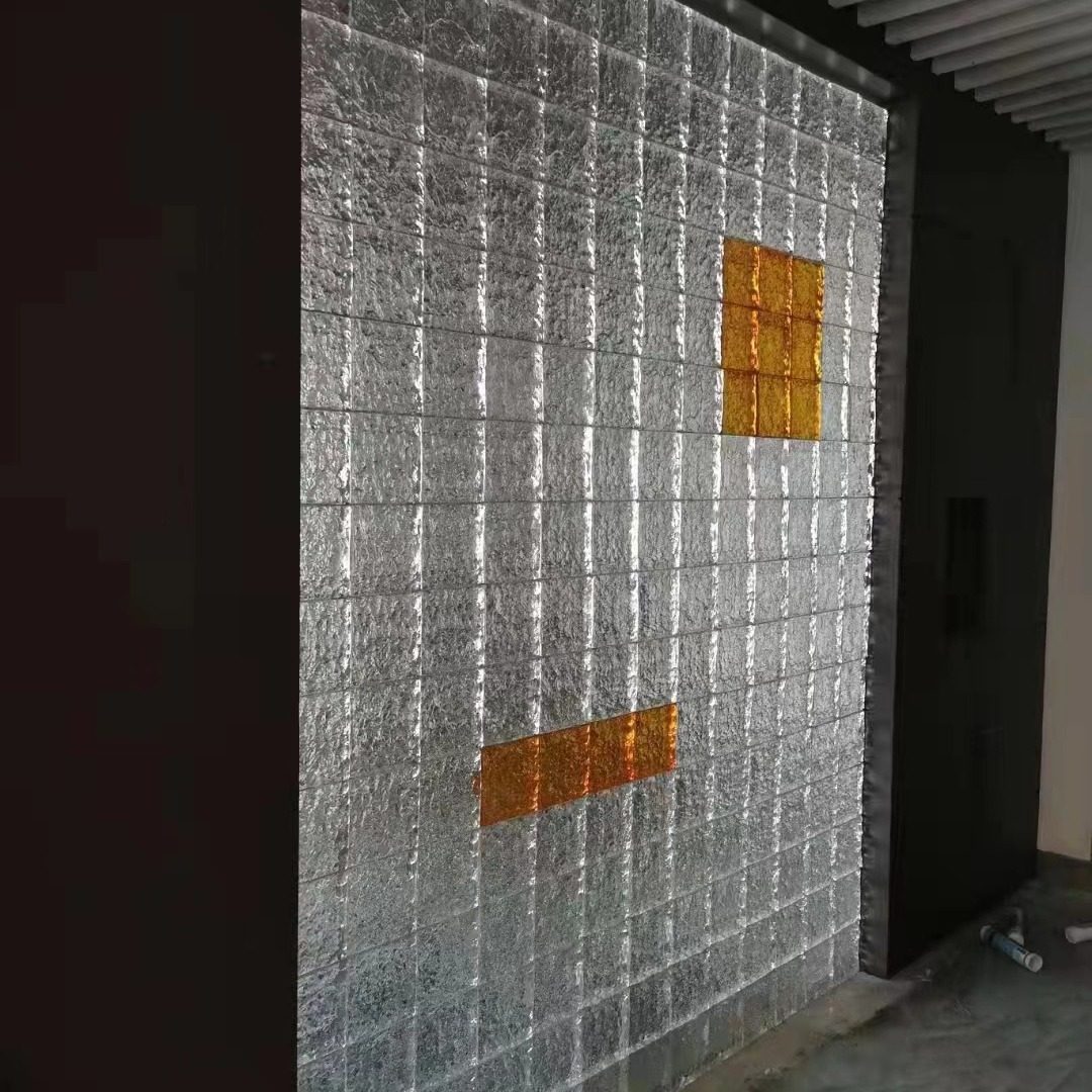 进口中黄色磨砂内彩彩色玻璃砖酒吧玄关卫生间隔断墙厂家直销推荐