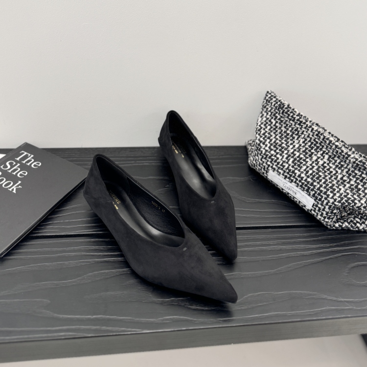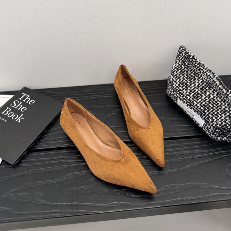 坡跟尖头浅口单鞋 低跟女鞋 女2025秋绒面一脚蹬时装 气质款 潮 鞋 法式