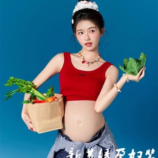 影楼新款 孕妈咪大肚照少女感小清新多巴胺室内孕妈咪写真照摄影服