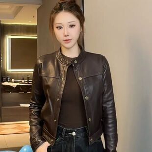 宽松休闲复古机车短款 立领韩版 皮夹克 新款 海宁皮衣外套女2026春季