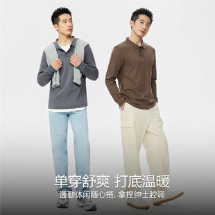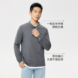 翻领上衣01015784 纯棉通勤一粒扣长袖 佐丹奴亲肤透气Polo衫 男新款