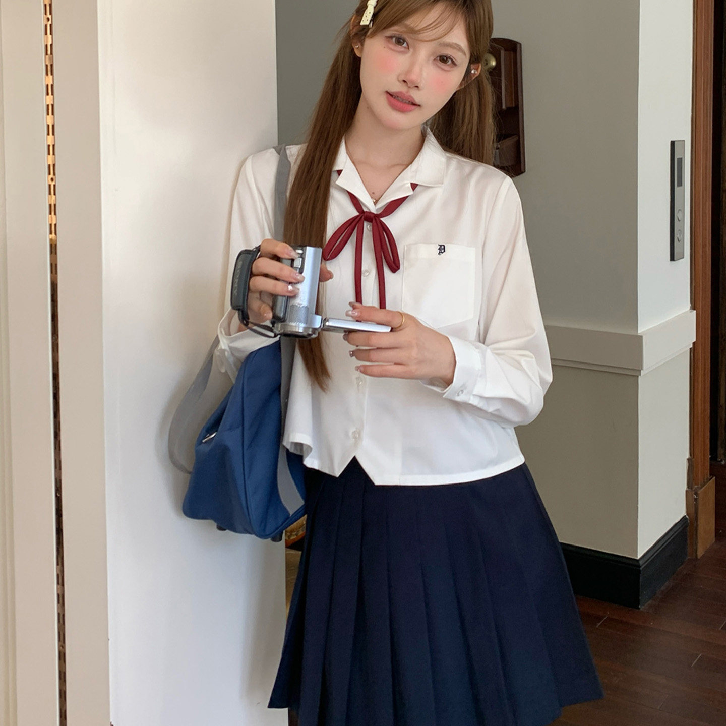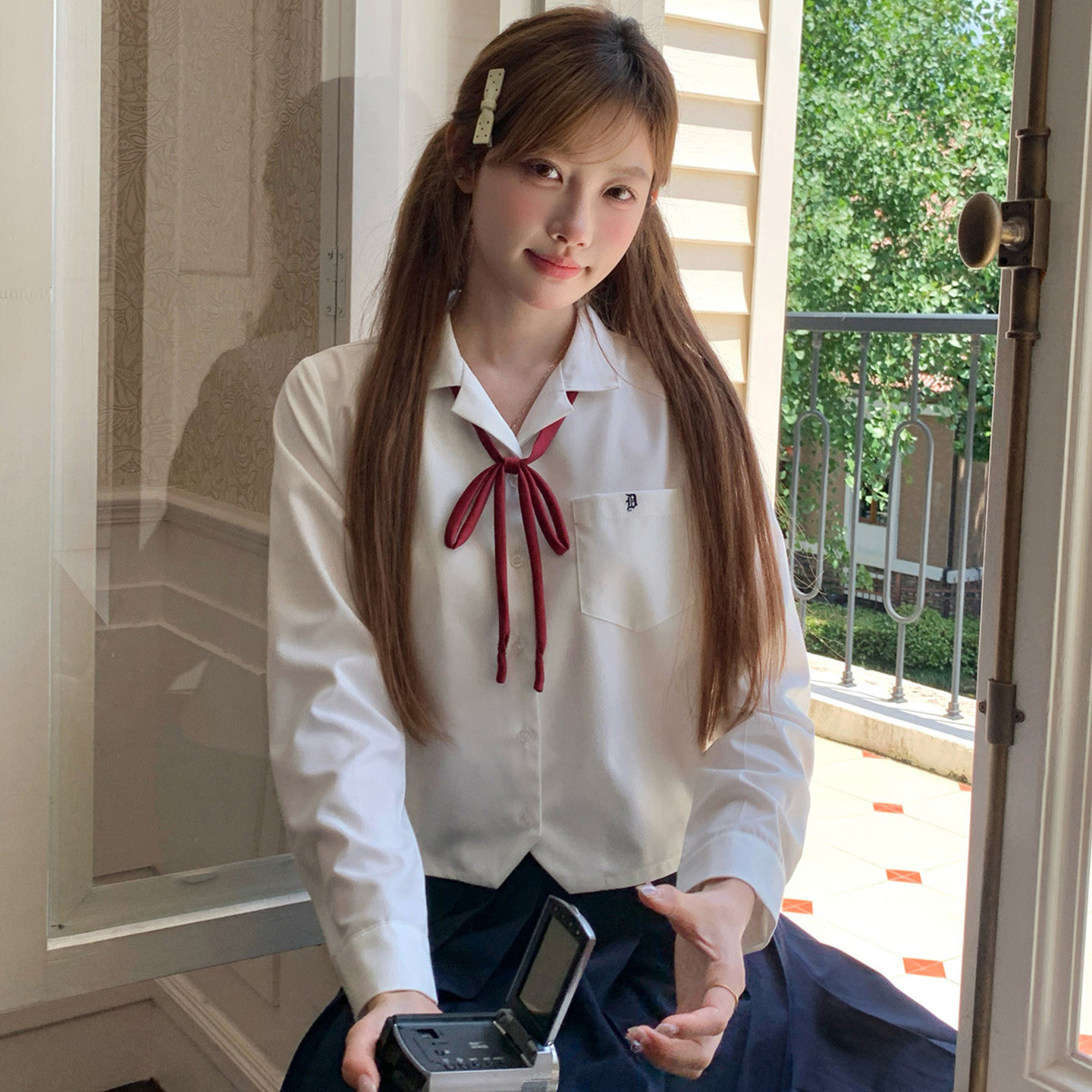 学院风显瘦百搭小个子短款 衬衫 上衣女 领长袖 东京岁时记jk白色西装