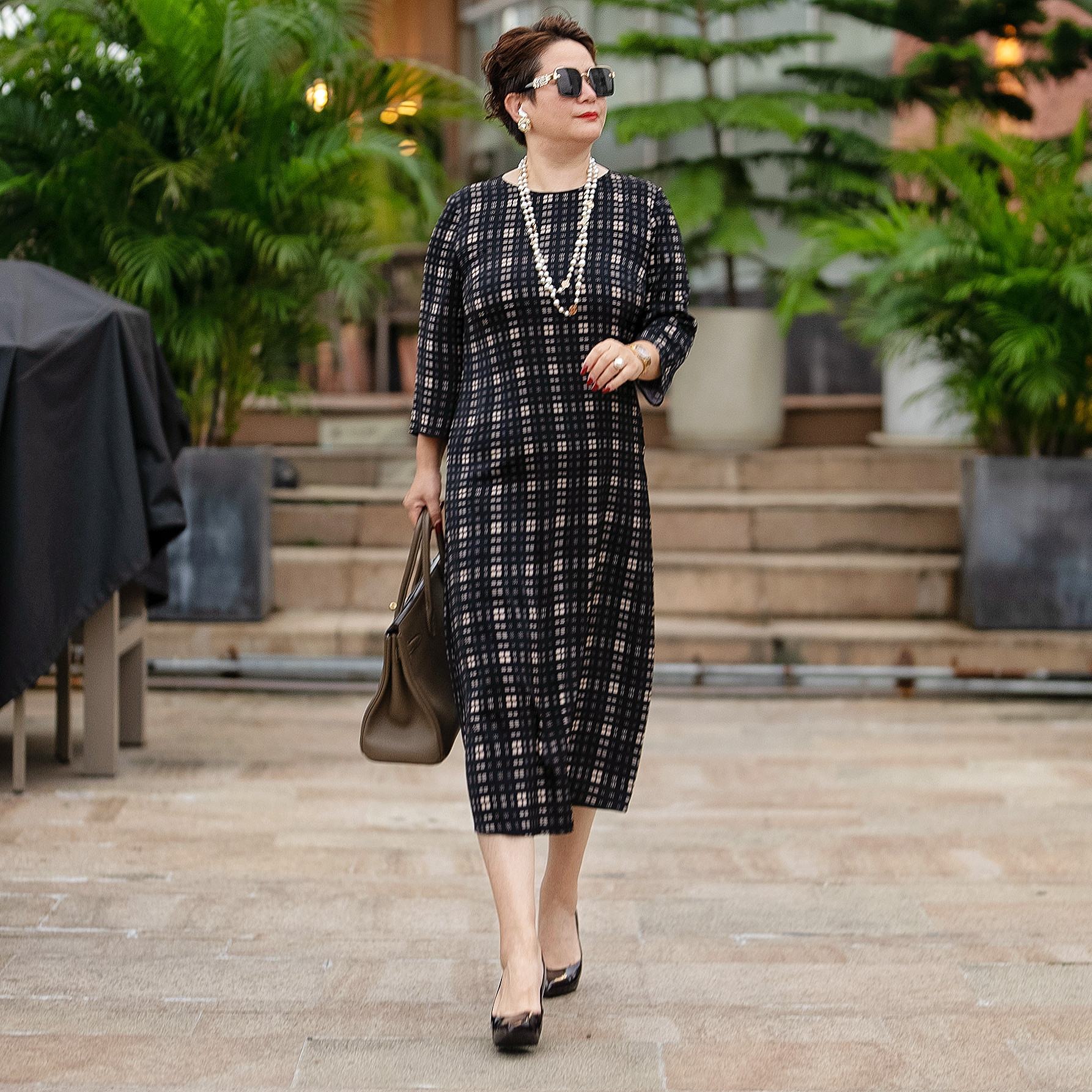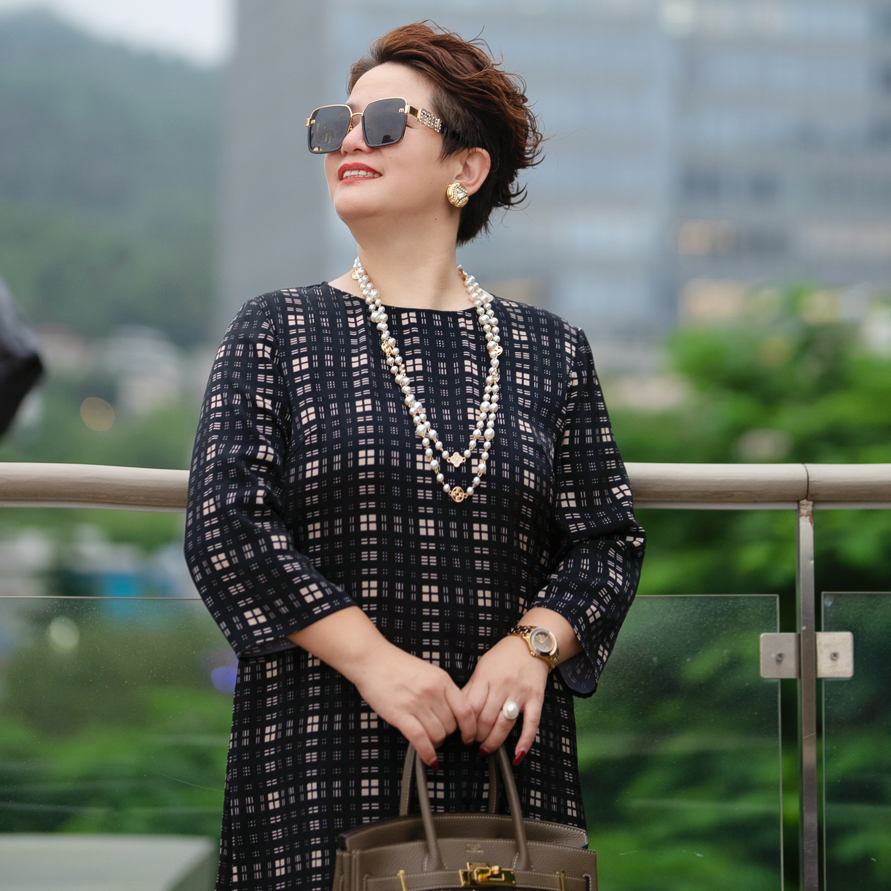 连衣裙子0333 显瘦雪纺九分袖 向红同学2026早秋新款 苏格兰格子大码