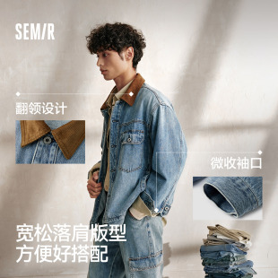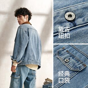 新款 2025秋季 复古牛仔中蓝外套宽松 森马夹克男士 森柔牛仔商场同款
