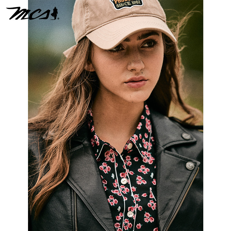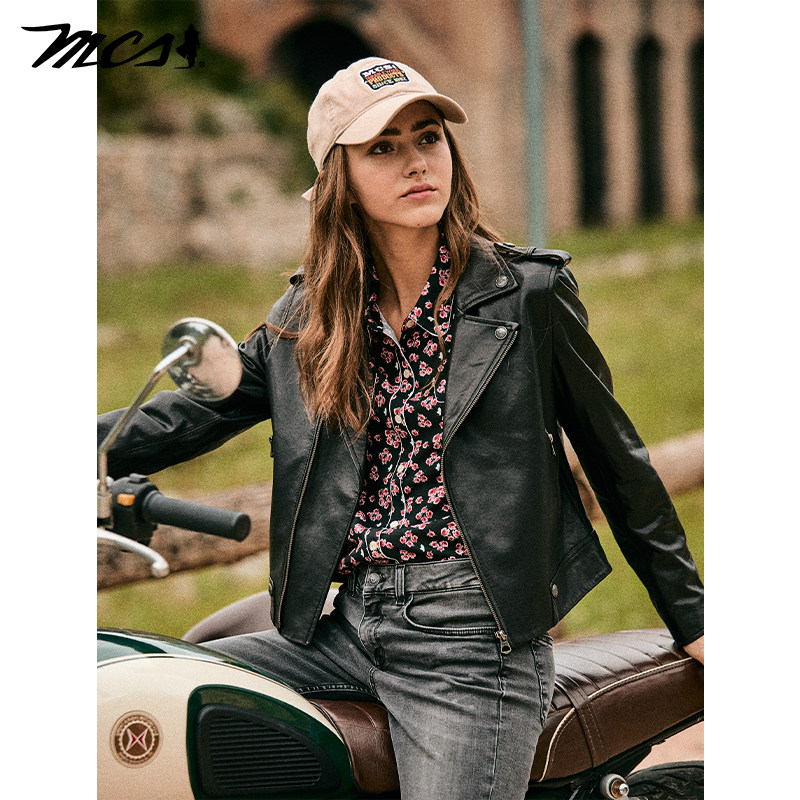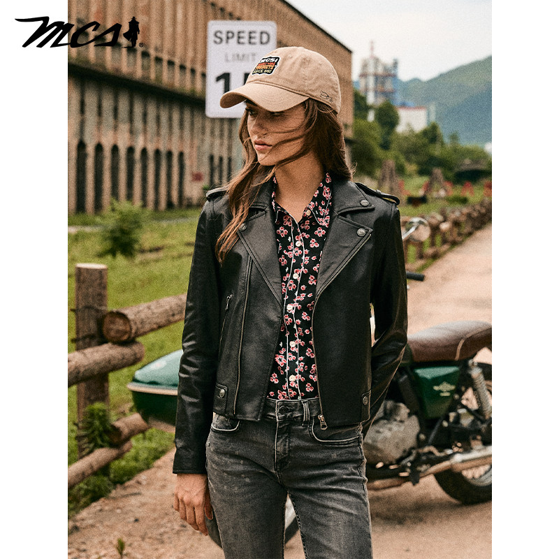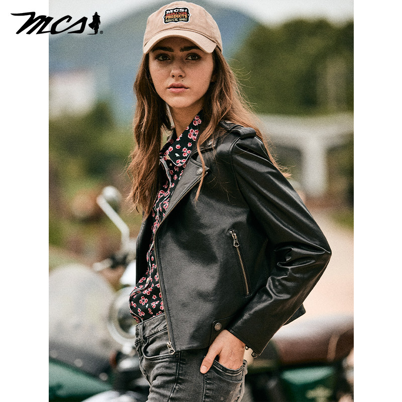 机车皮衣短款 MCS女装 绵羊皮经典 新款 复古皮外套 源自万宝路26春季