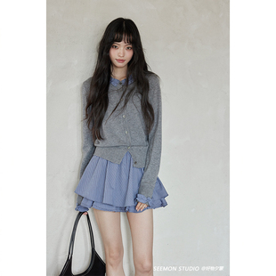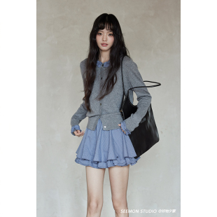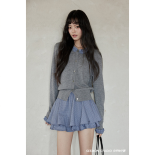 针织开衫 小众拼接长袖 女 春秋韩系气质上衣小个子薄款 夕蒙2026新款