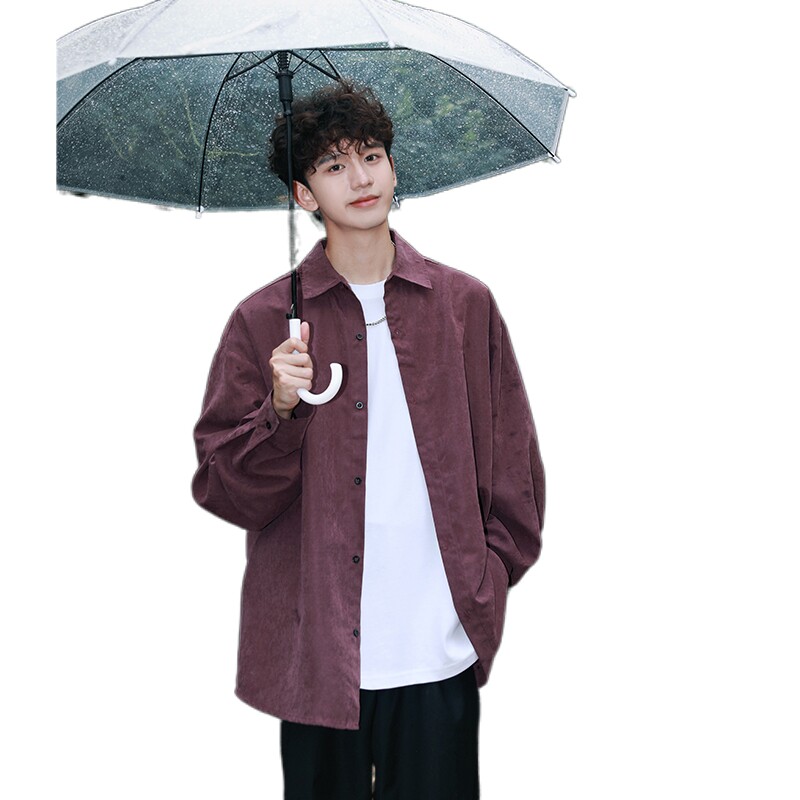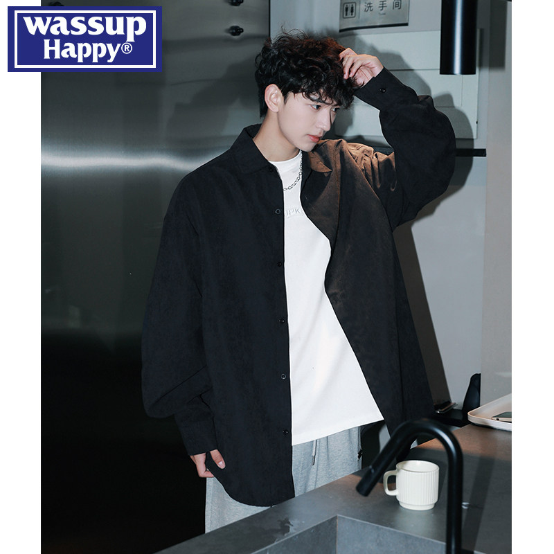 春秋季 wassup 男款 衬衫 潮牌复古宽松休闲翻领外套 happy桃皮绒长袖