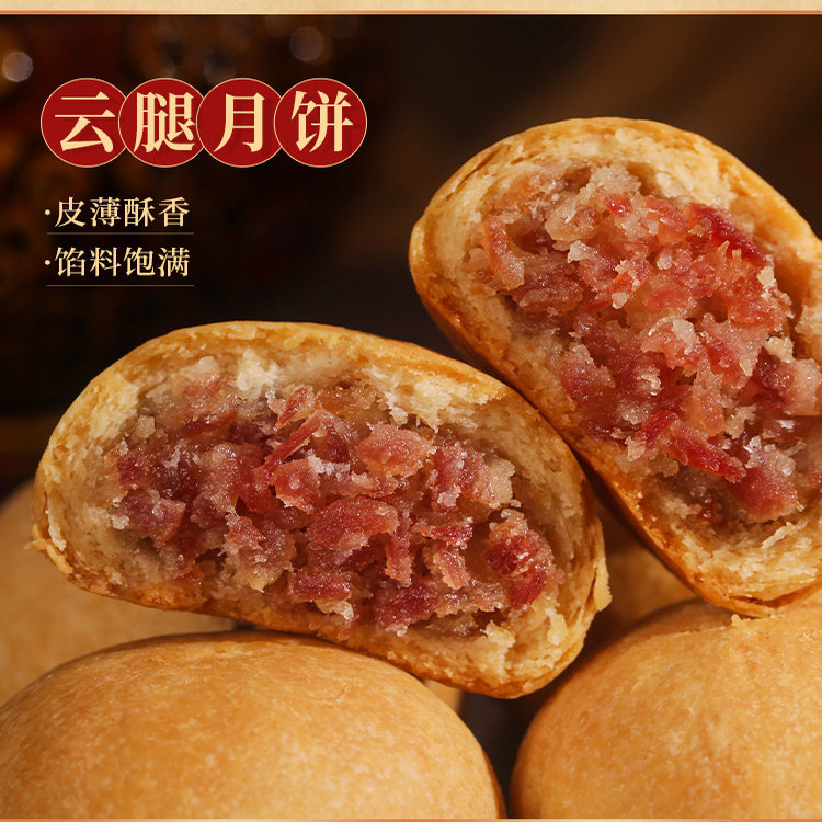 滇式 酥皮中秋节送人休闲糕点特产 云腿月饼云南宣威老火腿小饼散装