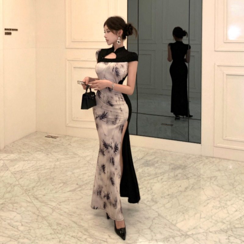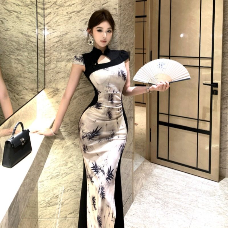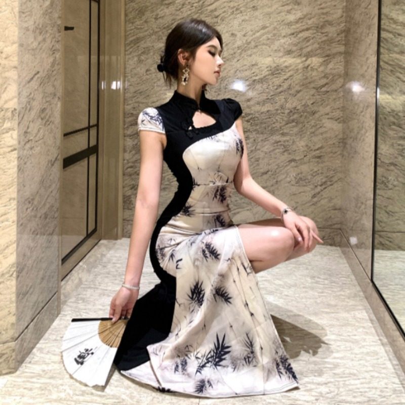 高级感新中式 包臀开叉旗袍连衣裙女 国风复古优雅气质收腰显瘦修身
