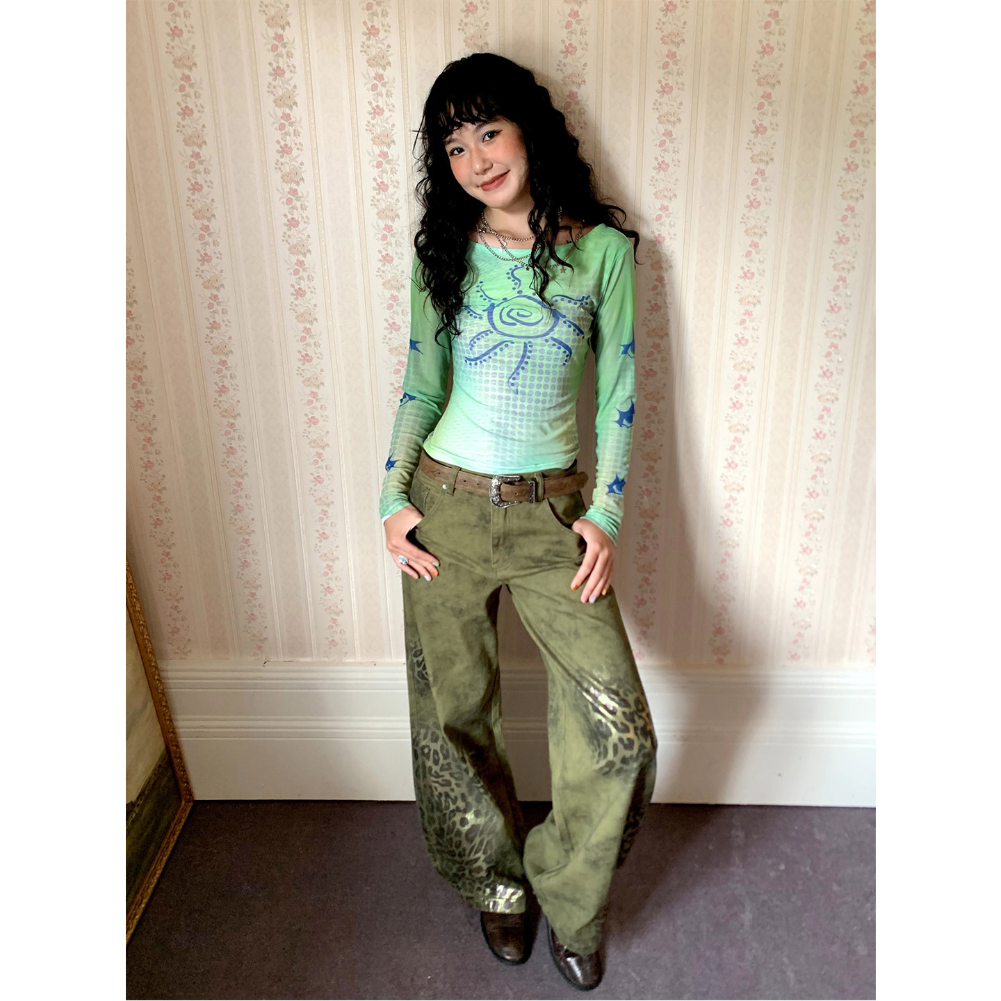 女 复古低腰显瘦y2k明线刺绣设计直筒牛仔长裤 TheDINA2025新款 美式