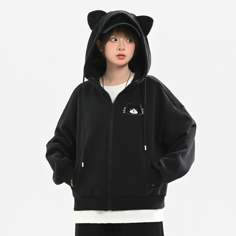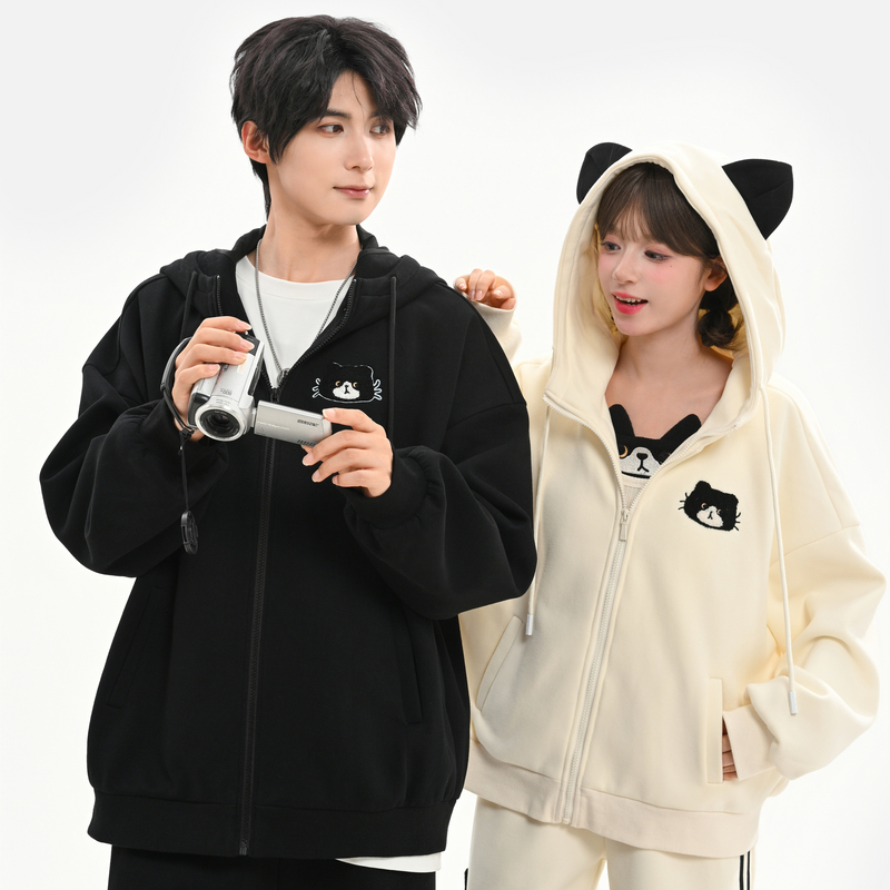 森女部落可爱情侣装 小个子宽松连帽上衣秋 加绒卫衣厚外套女冬新款