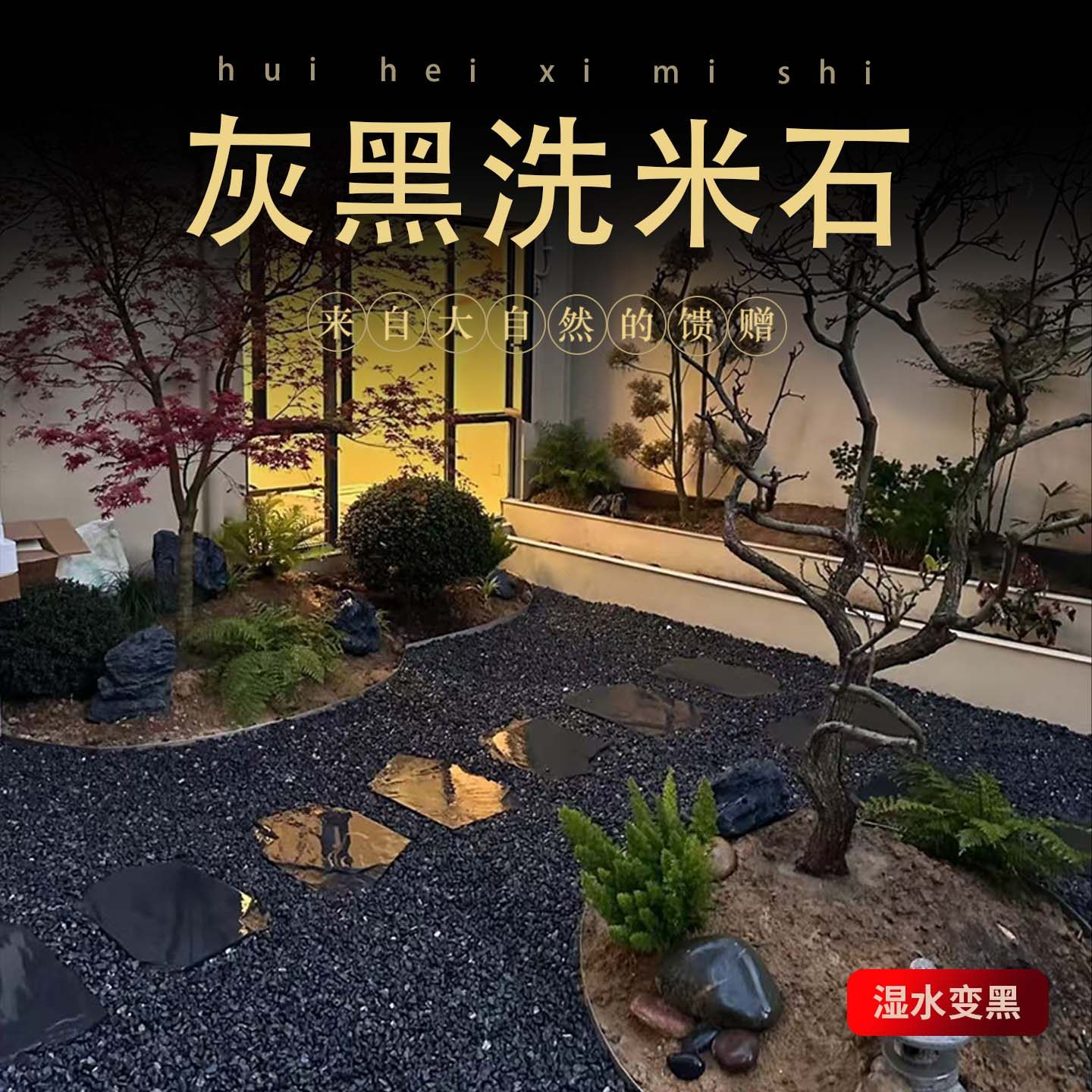 黑色砾石水洗石灰色鹅卵石日式 饰景观青石碎石子小石头造景 庭院装