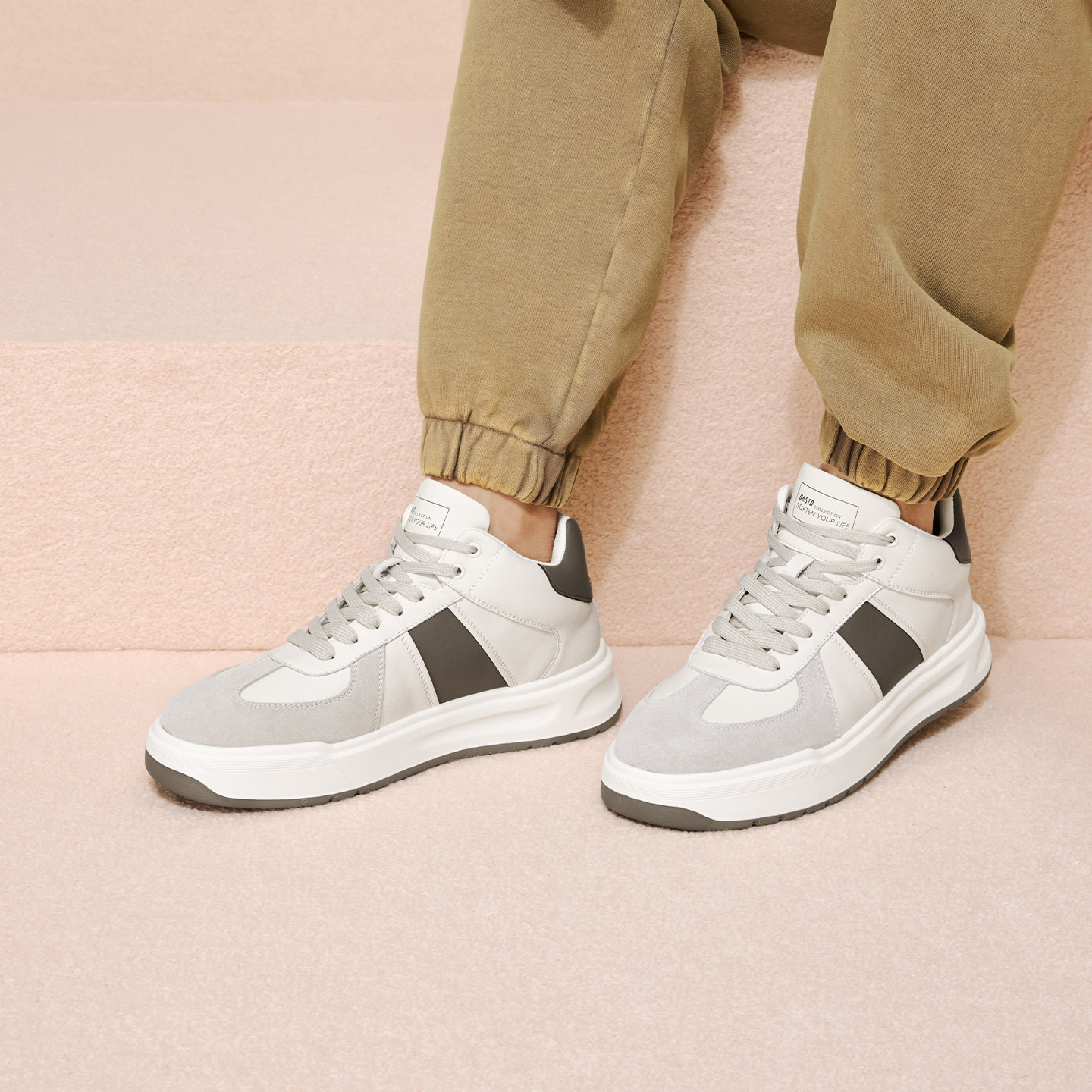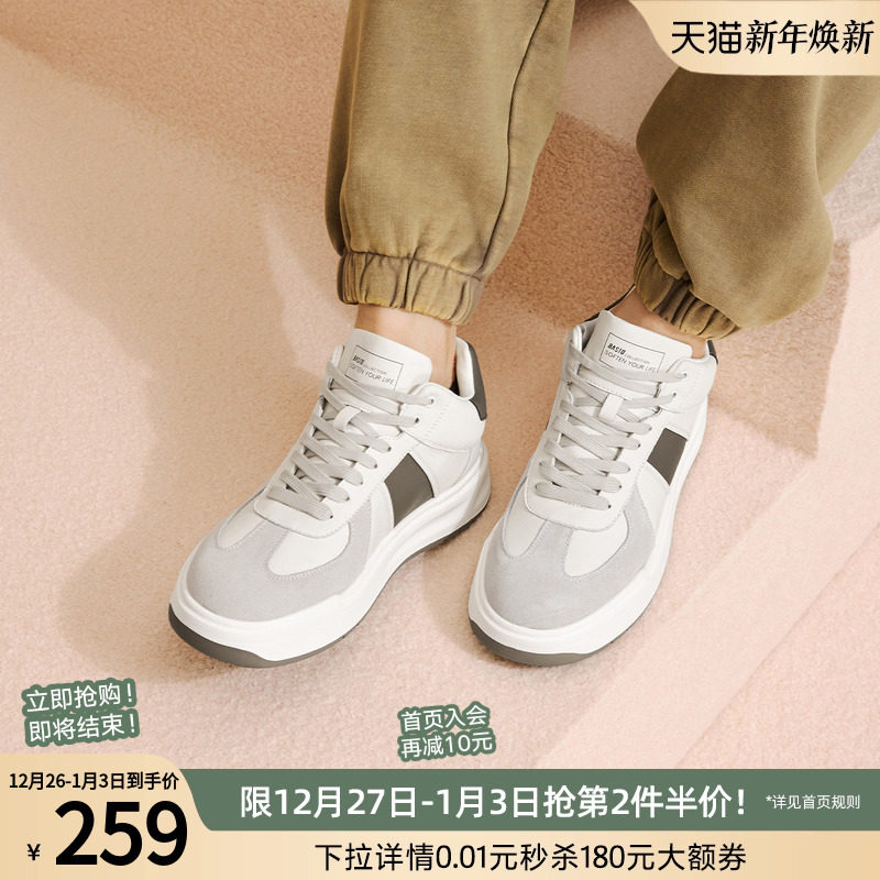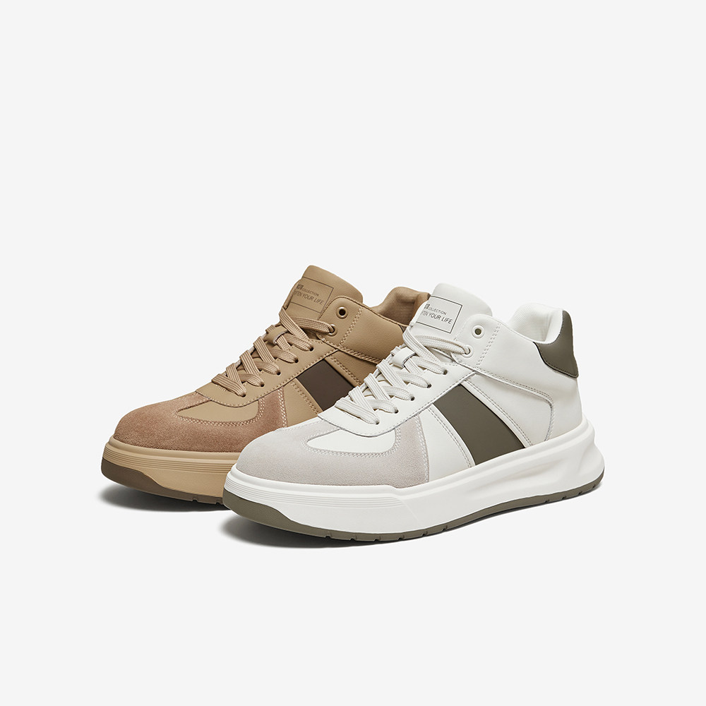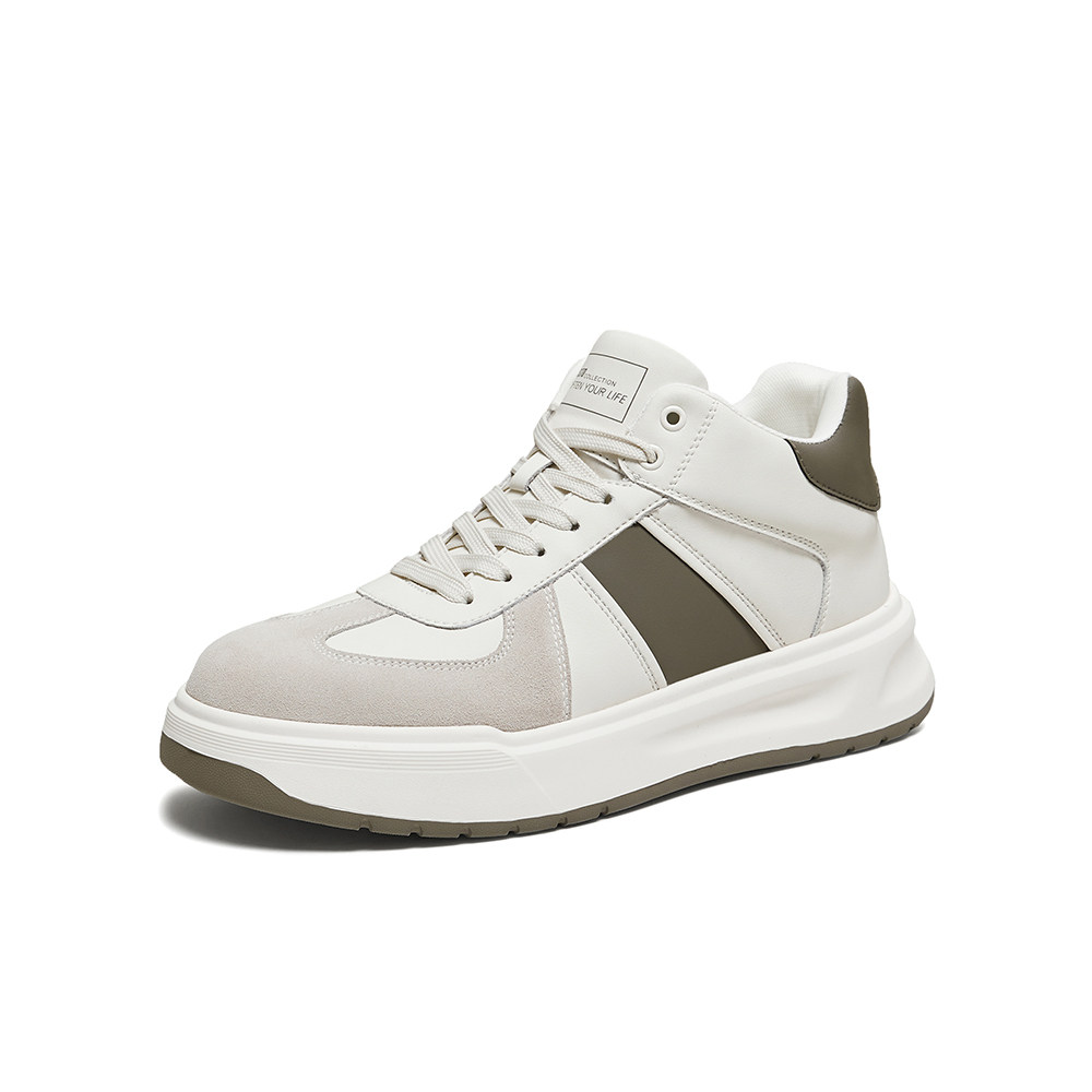 2025年冬季 加绒保暖休闲鞋 新款 厚底杏色高帮板鞋 子 男士 热风男鞋