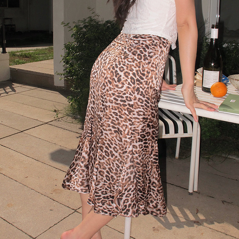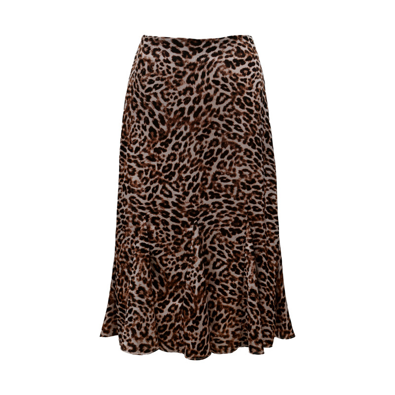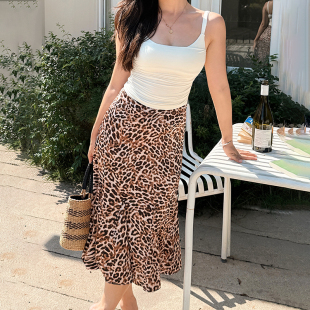 高腰显瘦a字伞裙 多裁片缎面豹纹印花半身裙女新款 ooh itch痒痒