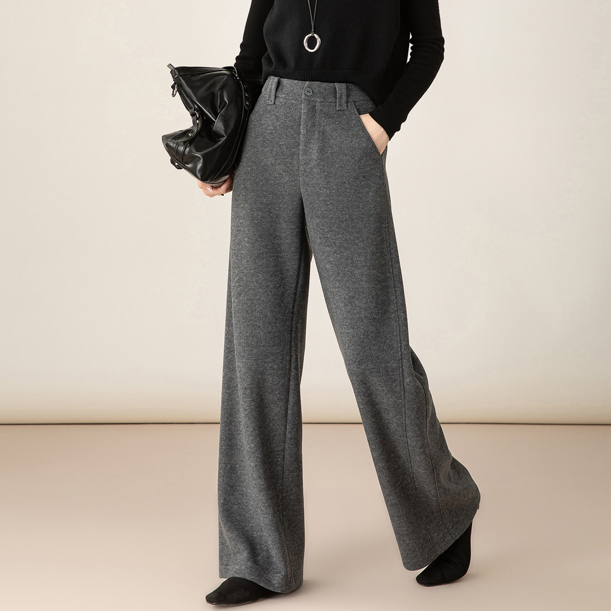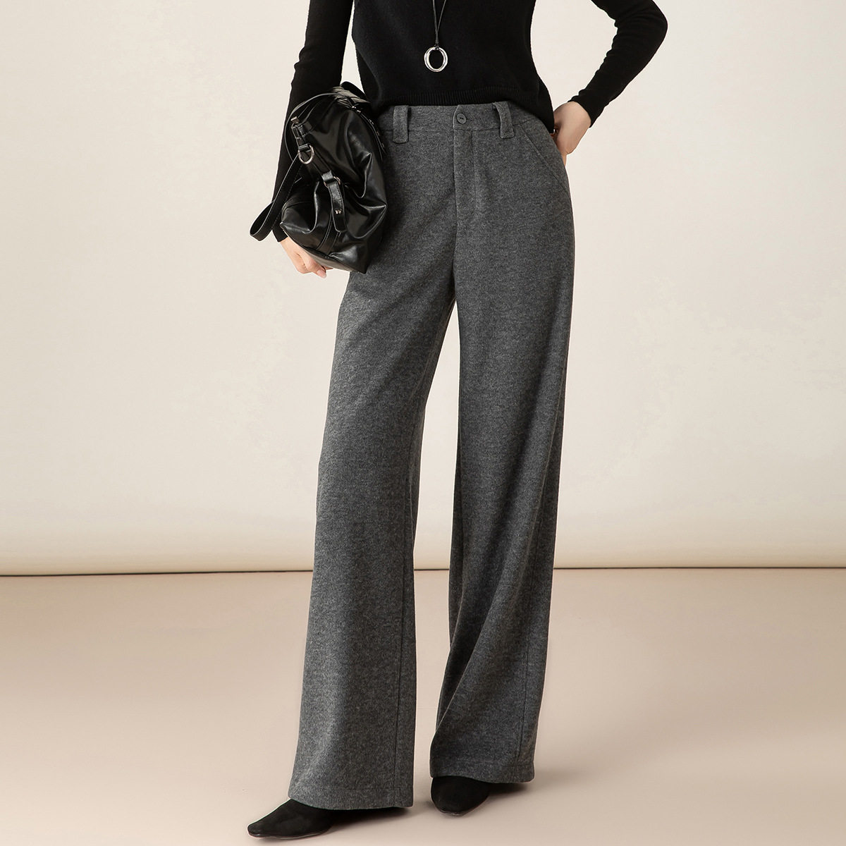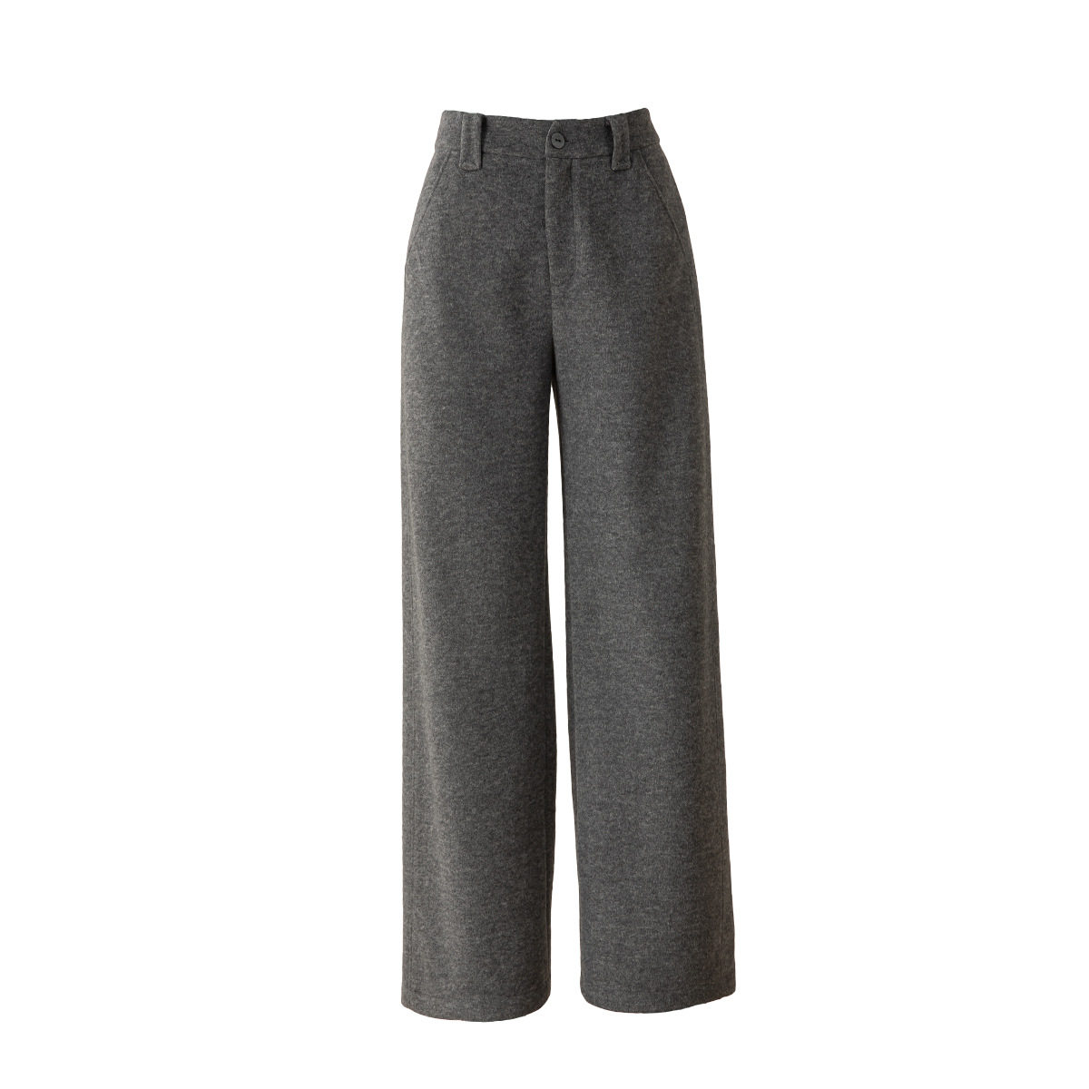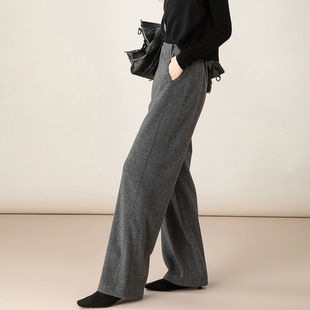 垂感显瘦小个子长裤 忆霏冬季 女灰色直筒休闲裤 醋酯羊毛针织裤 新款