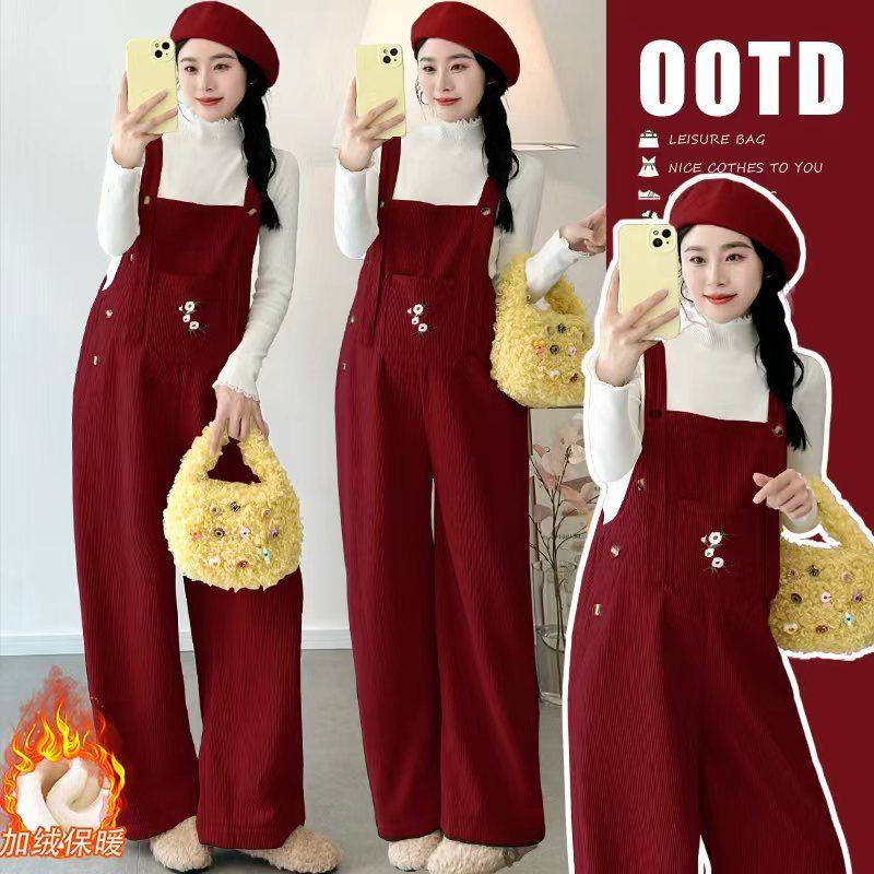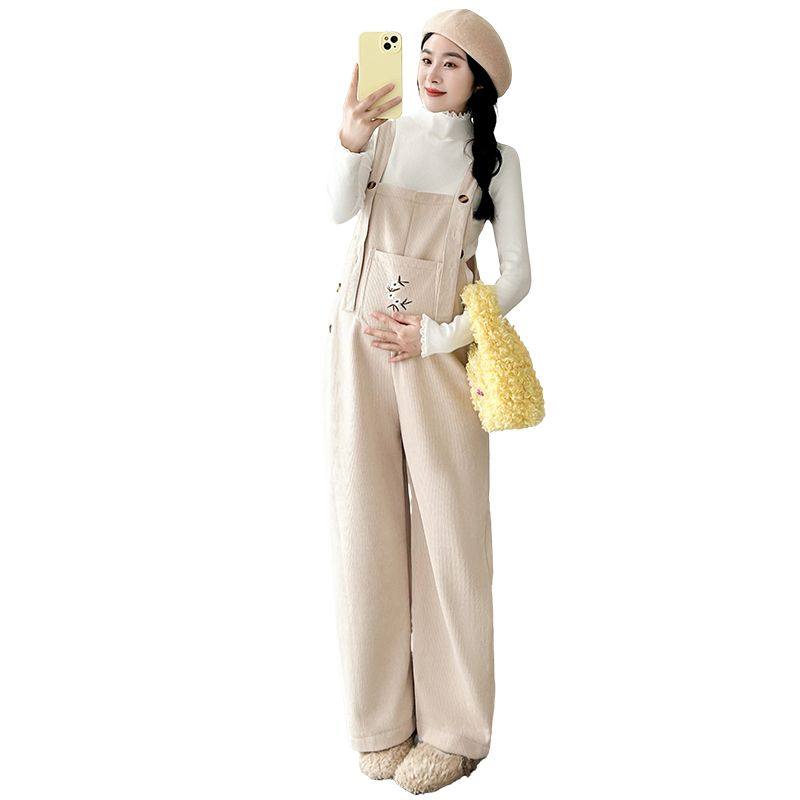 气质显瘦背带裤 灯芯绒孕妇加绒套装 毛衣两件套 2025秋冬新款 孕妇装
