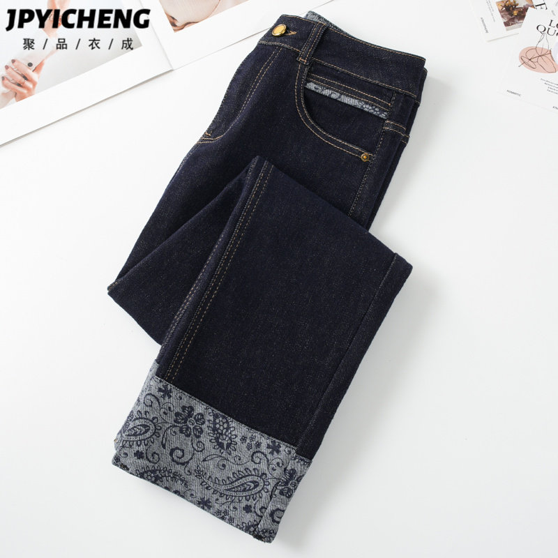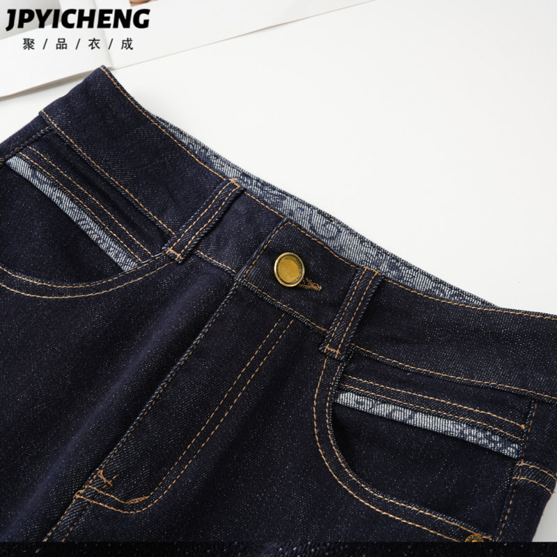 小脚九分烟管裤 深蓝色牛仔直筒裤 高腰显瘦翻边窄版 冬季 女2025新款