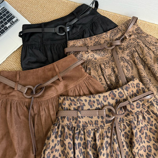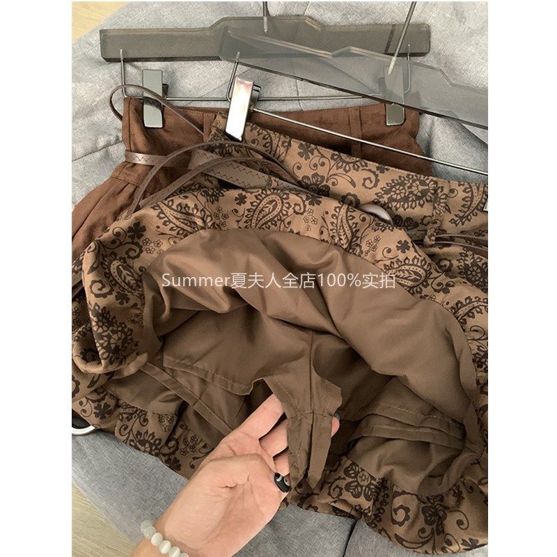 美拉德穿搭高腰棕色a字半身裙女大码 胖mm遮肚藏肉百褶显瘦长裙冬