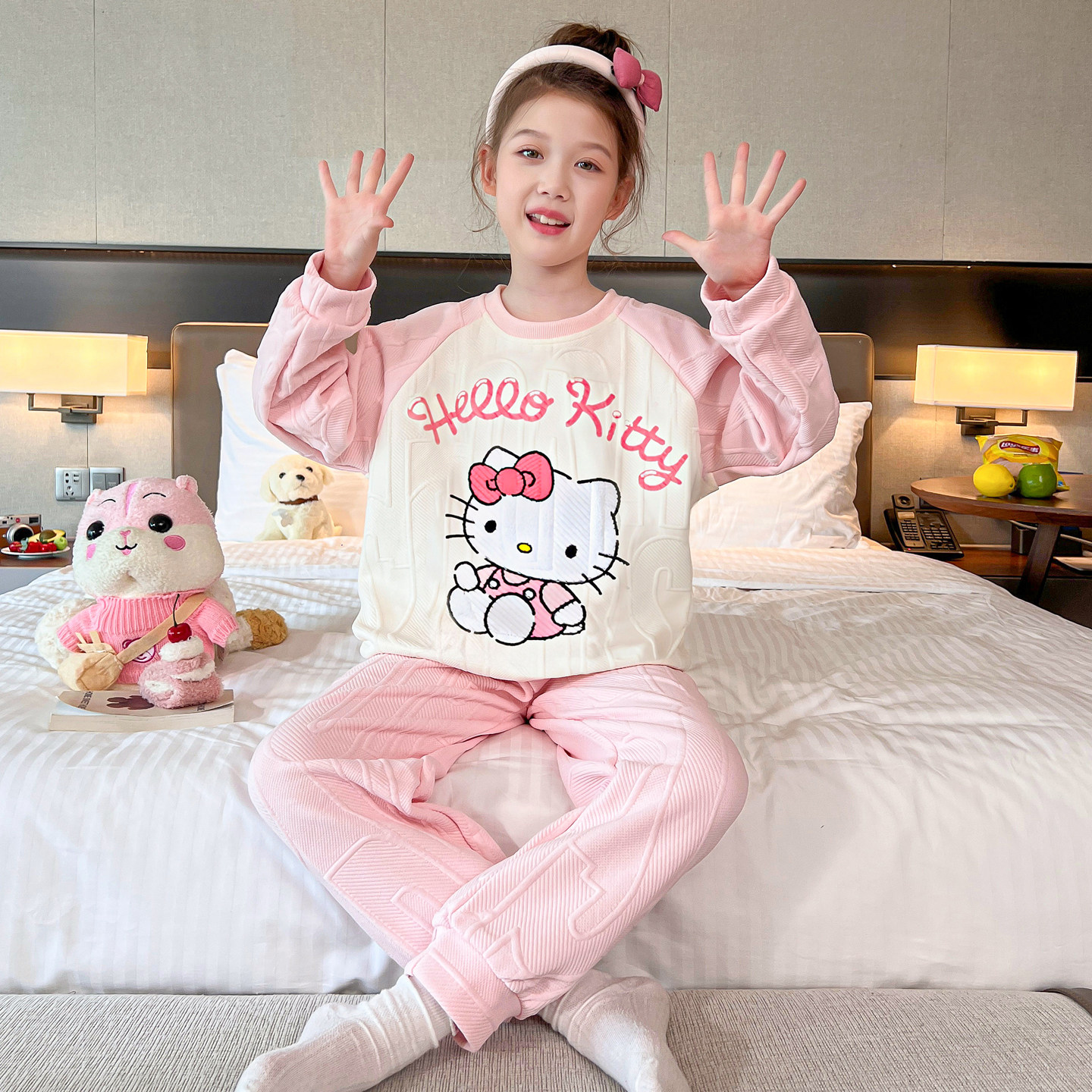 儿童睡衣空气夹棉女孩2025款 女童公主女初中生外穿家居服 秋冬长袖