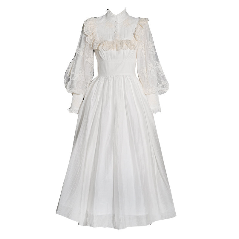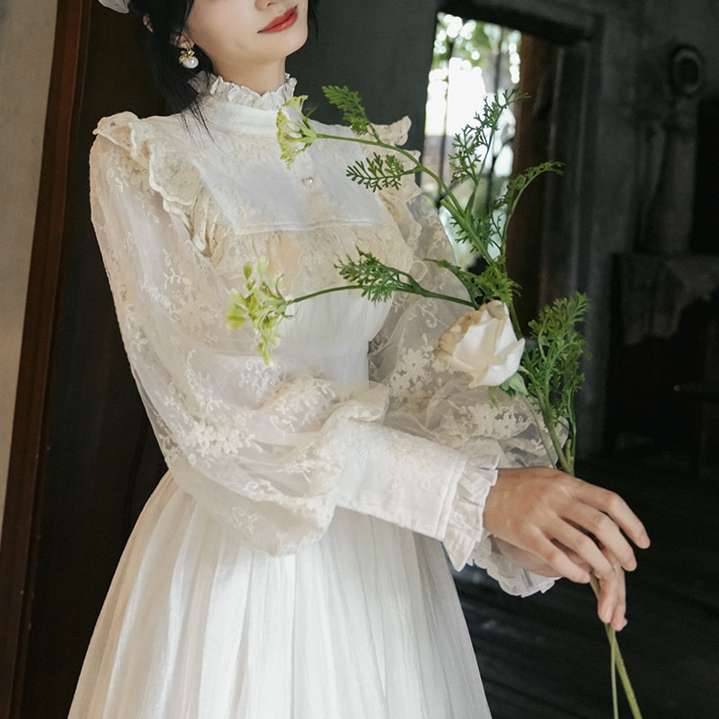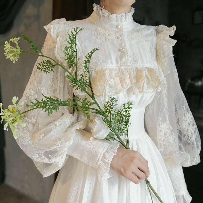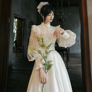 宫廷复古刺绣花灯笼袖 天丝法式 连衣裙礼服长 薄雾庄园 弥爱原创