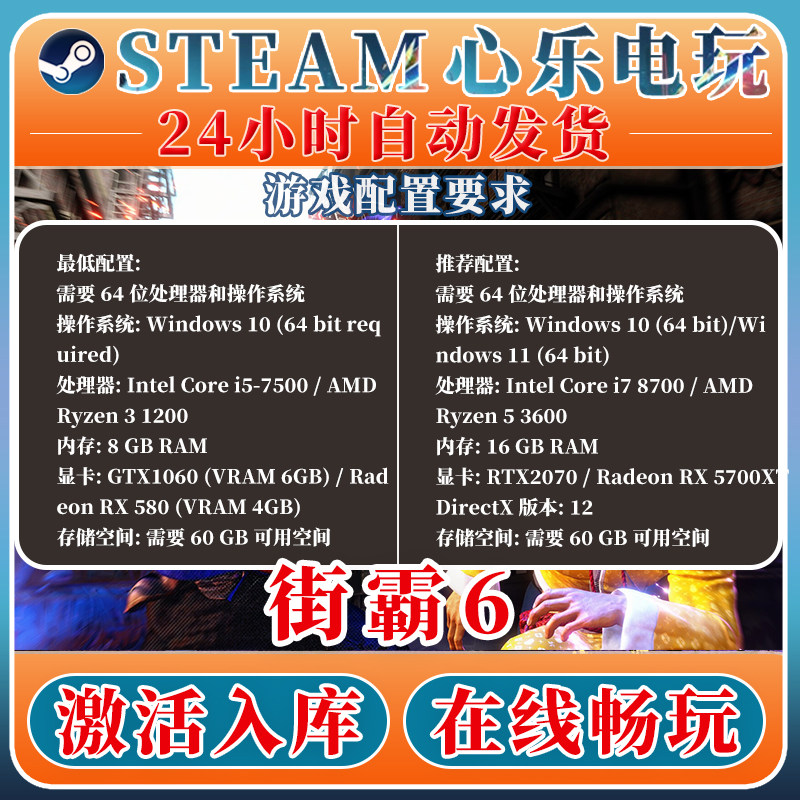 steam正版 Fighter 激活码 Street 6单机游戏 入库全DLC 街头霸王6