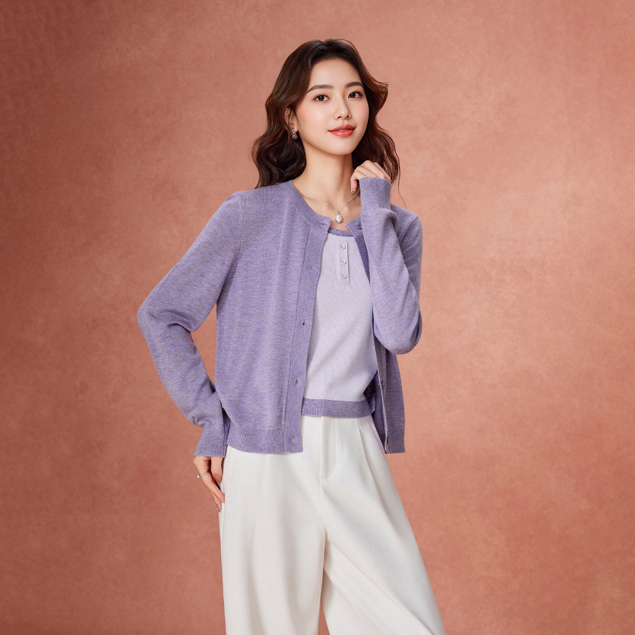 韩版 新款 简约休闲通勤气质百搭毛织两件套上衣 爱依服2025秋季 IEF