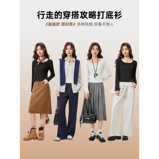 打底针织衫 紧身长袖 上衣加厚加绒内搭毛衣女 圆领修身 秋冬2025新款