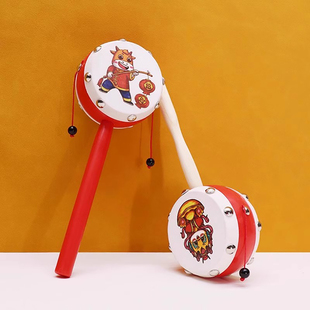 12生肖拨浪鼓木质老式 1岁宝宝手工传统玩具 羊皮新生婴儿可啃咬0