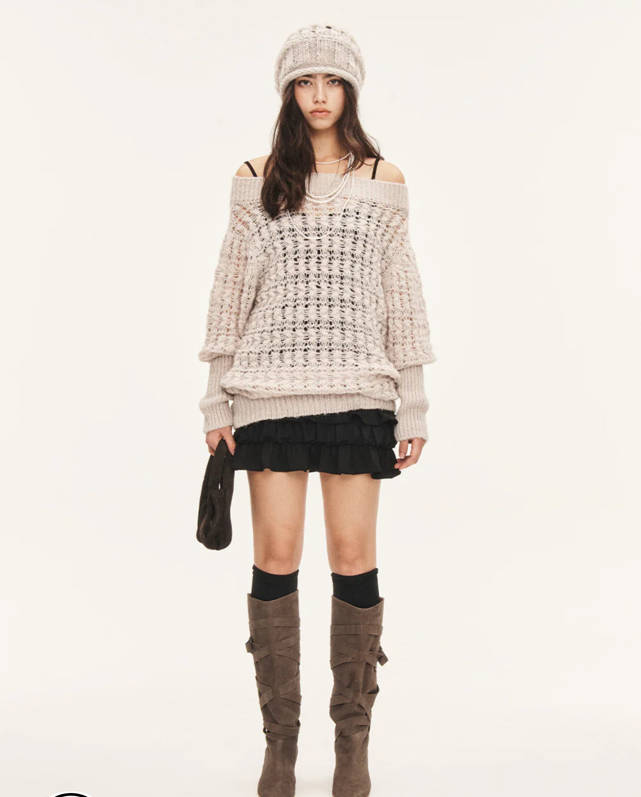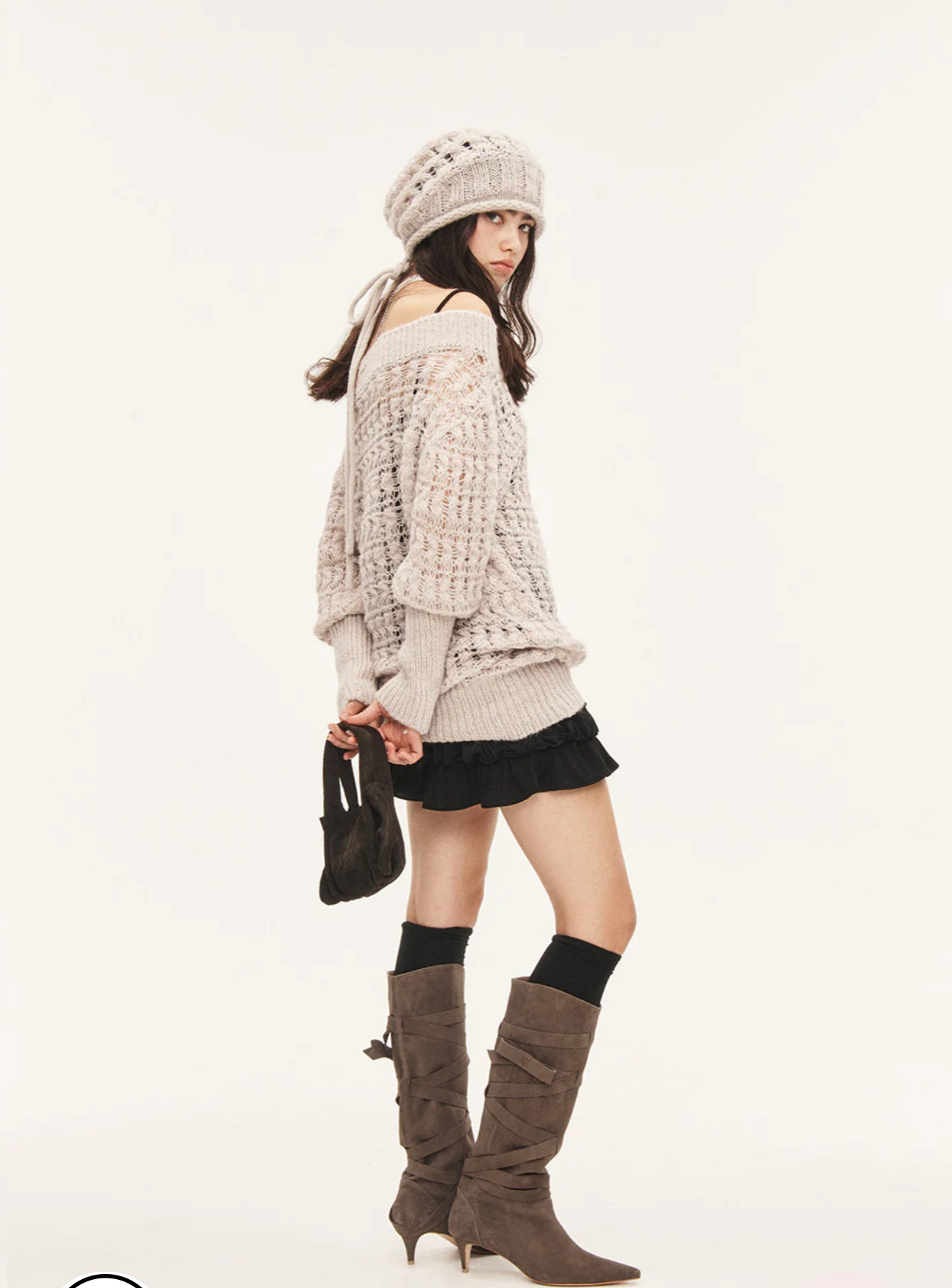 针织打底衫 品牌高级感羊毛衫 女半高领宽松毛衣秋冬加厚羊绒长袖