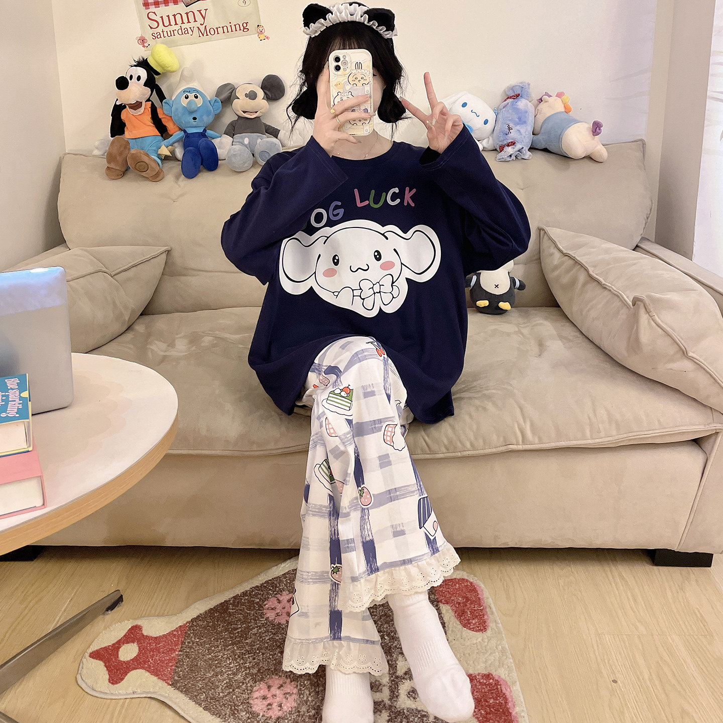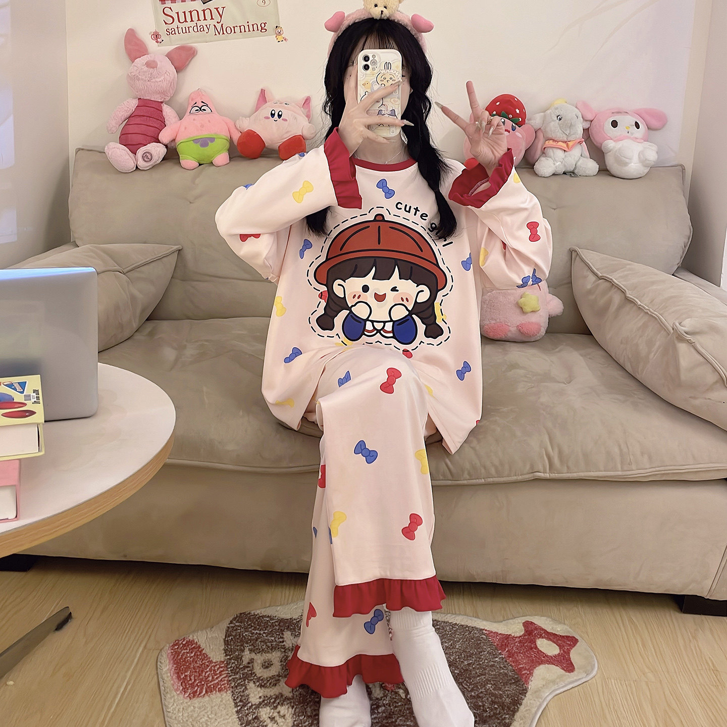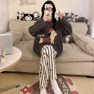 全棉秋天可外穿家居服套装 甜美宽松大码 纯棉长袖 浪莎睡衣女春秋季