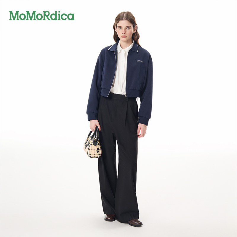 新短款 Momordica2025秋季 翻领卫衣外套休闲棉感绣花拉链 清仓