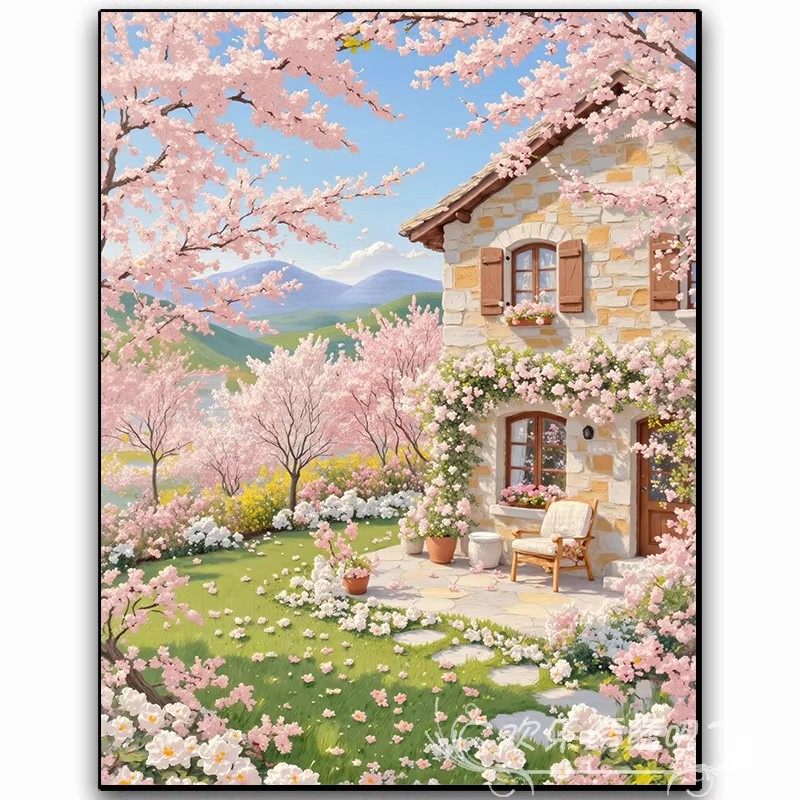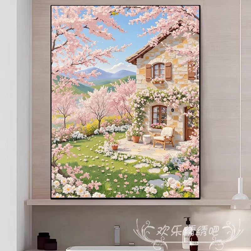 欧式 饰画成品仿油画风景唯美高级感卧室客厅摆挂画 桃花治愈清新装