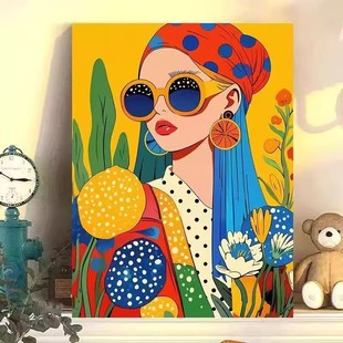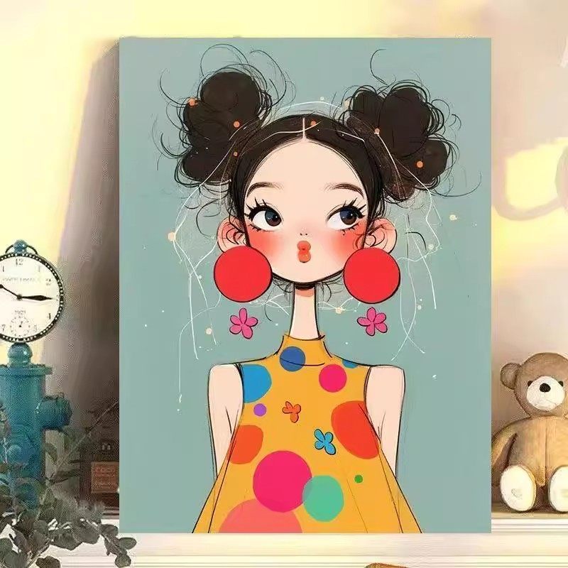 萌系女孩时尚 饰画成品仿油画人物可爱高级感卧室客厅摆挂画 潮流装