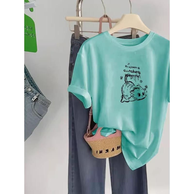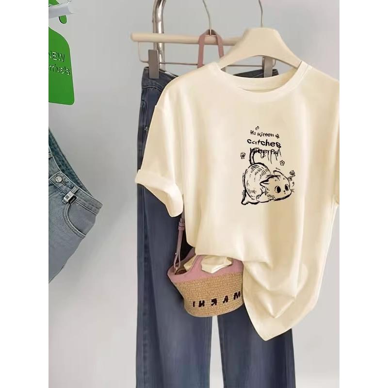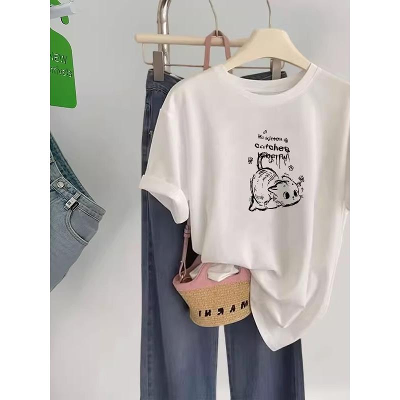 夏装 t恤女2025年新款 情侣圆领上衣 正肩显瘦短袖 粉色纯棉宽松大版