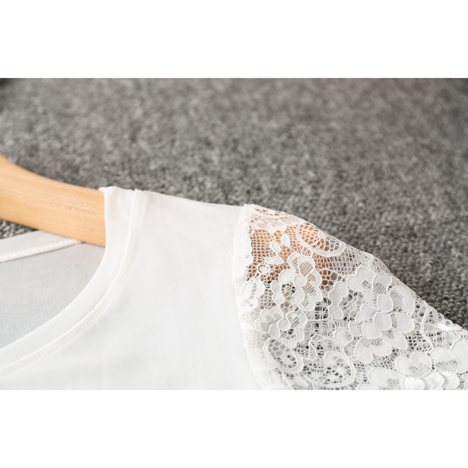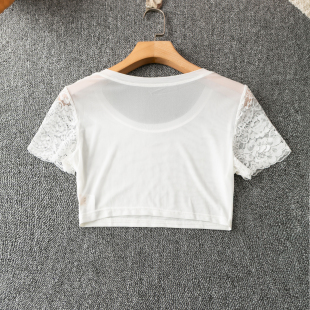 袖 子蕾丝印花 短款 夏季 套头蕾丝衫 新款 圆领短袖 XDA17031 外贸韩版