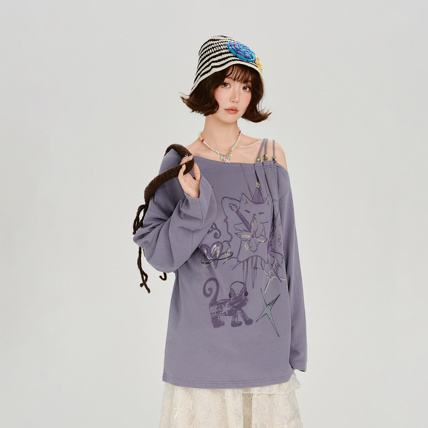 小女孩内搭 女童洋气花边上衣打底衫 戴维贝拉儿童长袖 T恤秋冬新款
