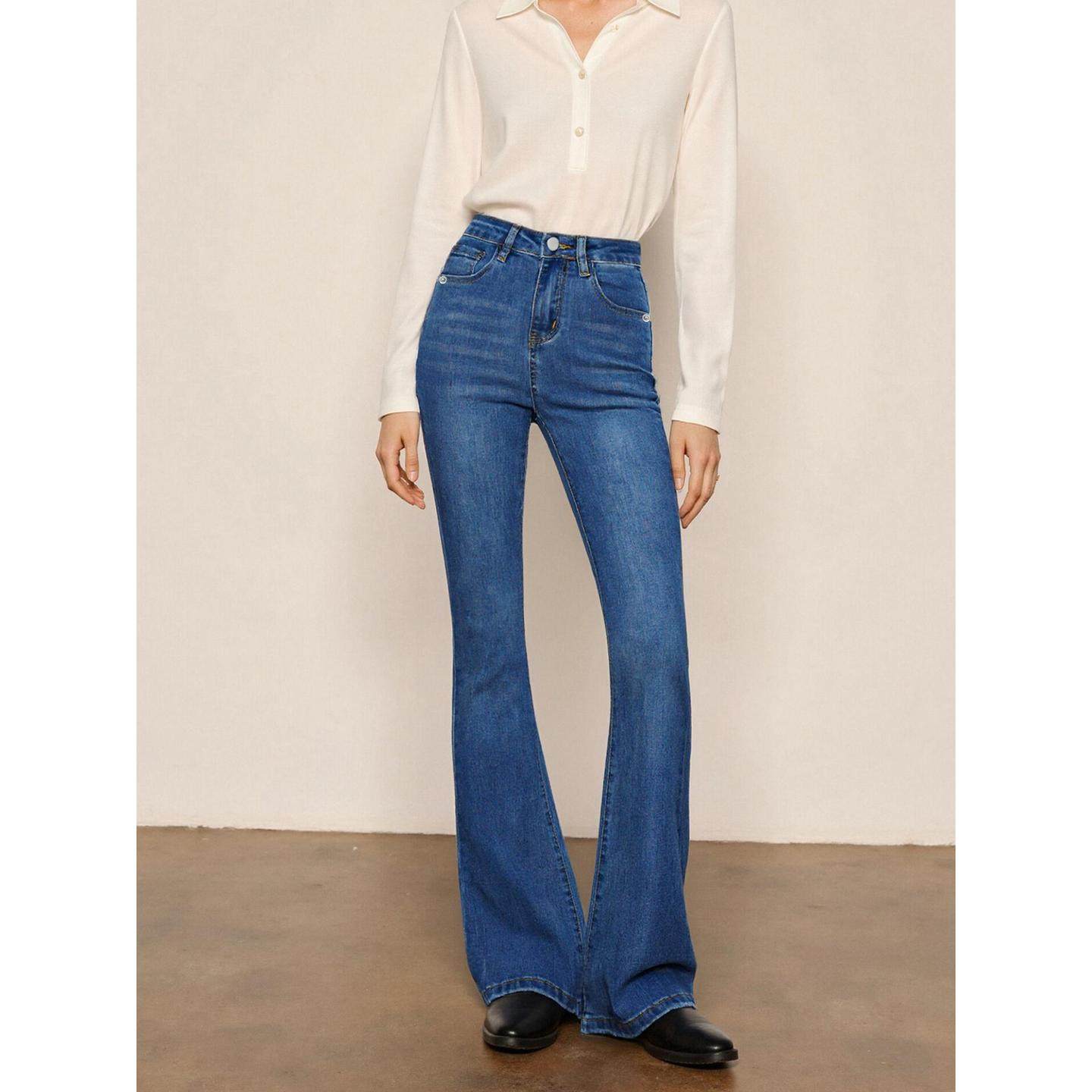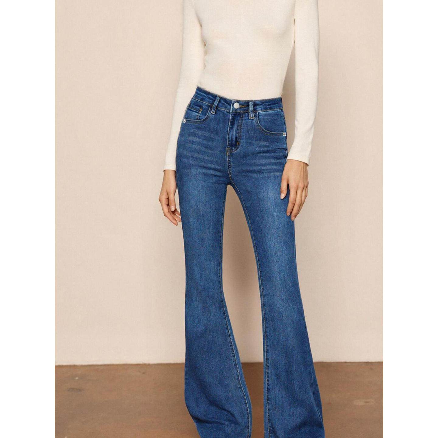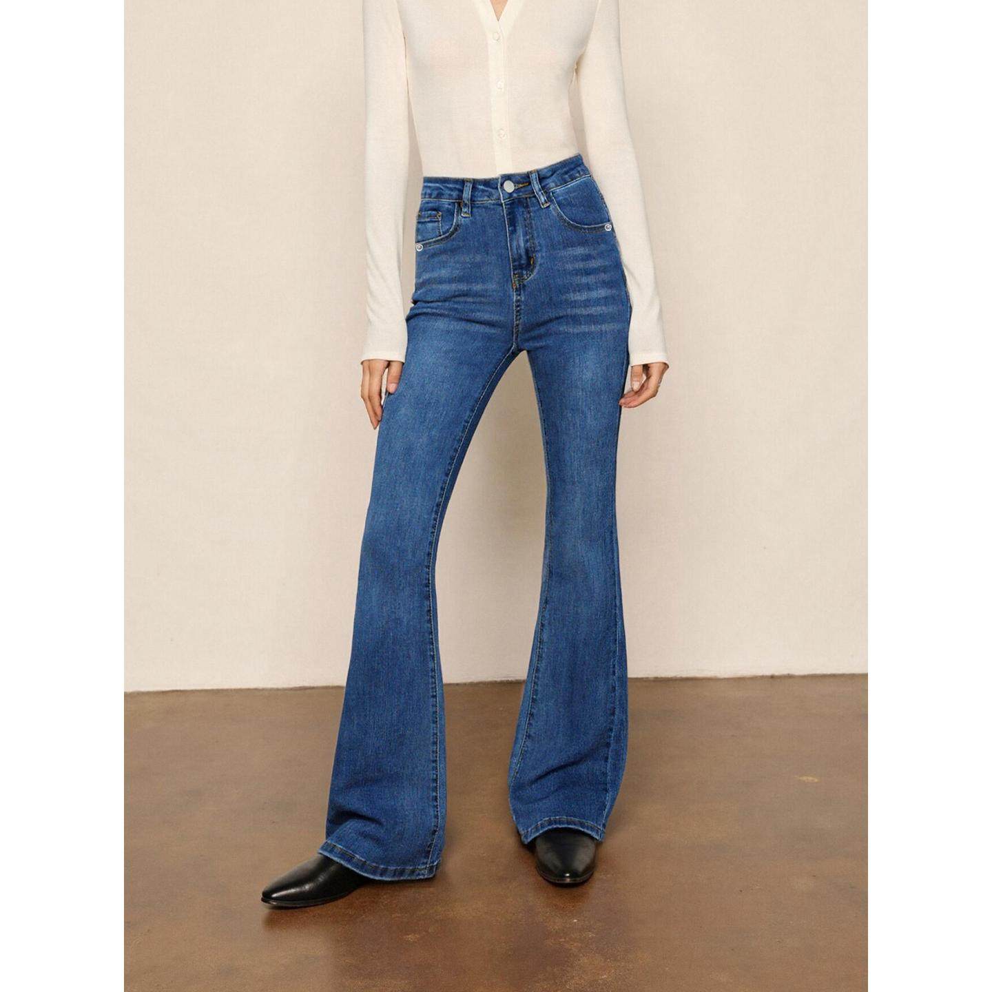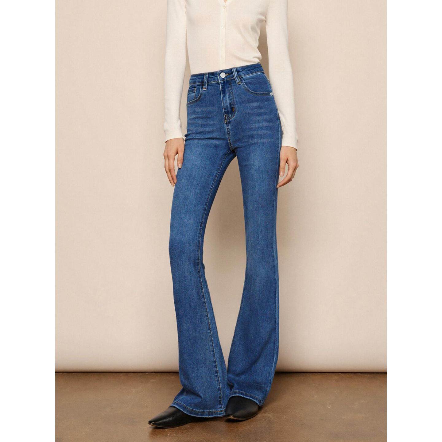 女秋冬加绒加厚高腰显瘦长裤 百家好复古蓝微喇牛仔裤 House Basic