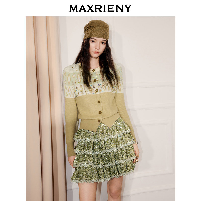外套25冬miu系奶奶衫 MAXRIENY老派少女感穿搭针织衫 商场同款