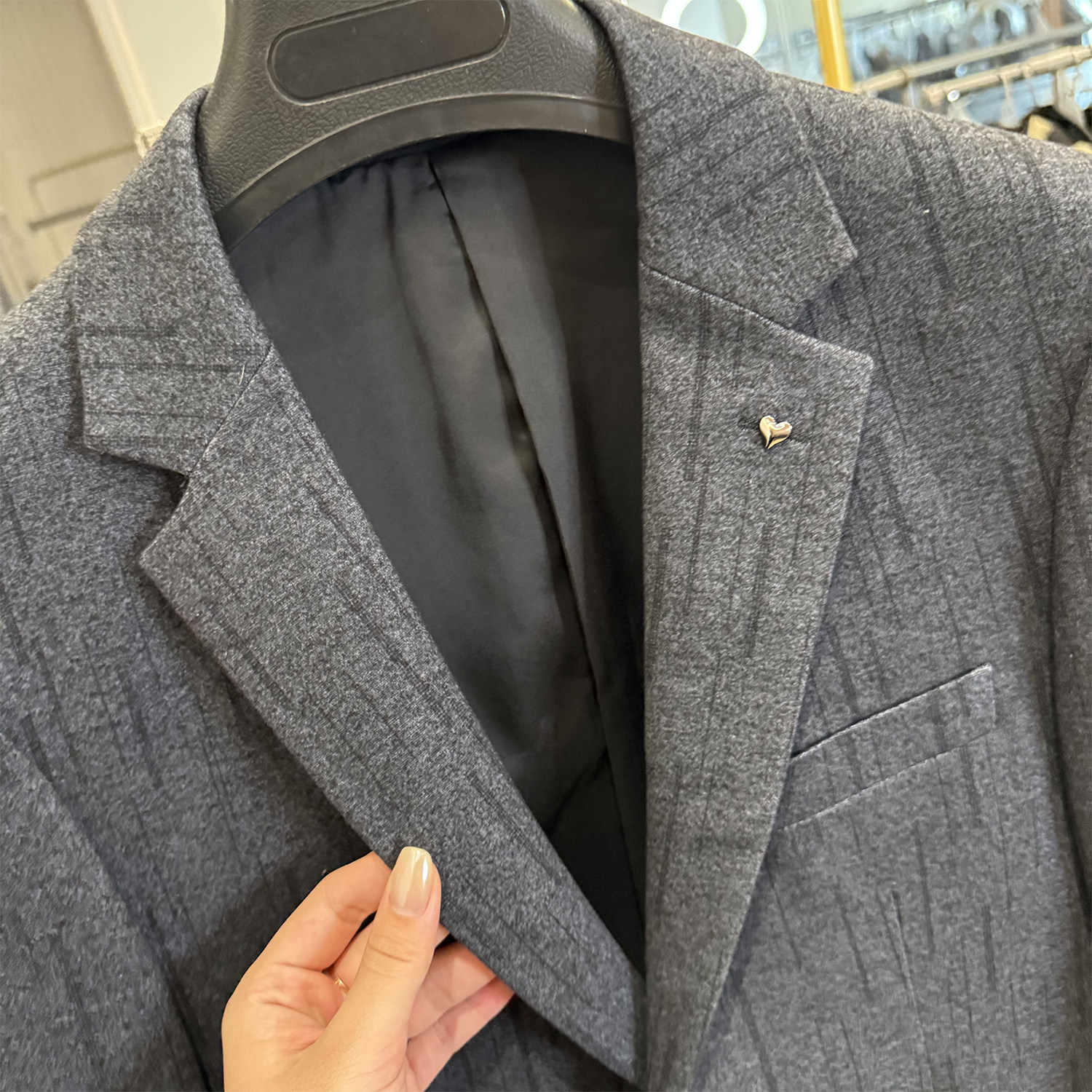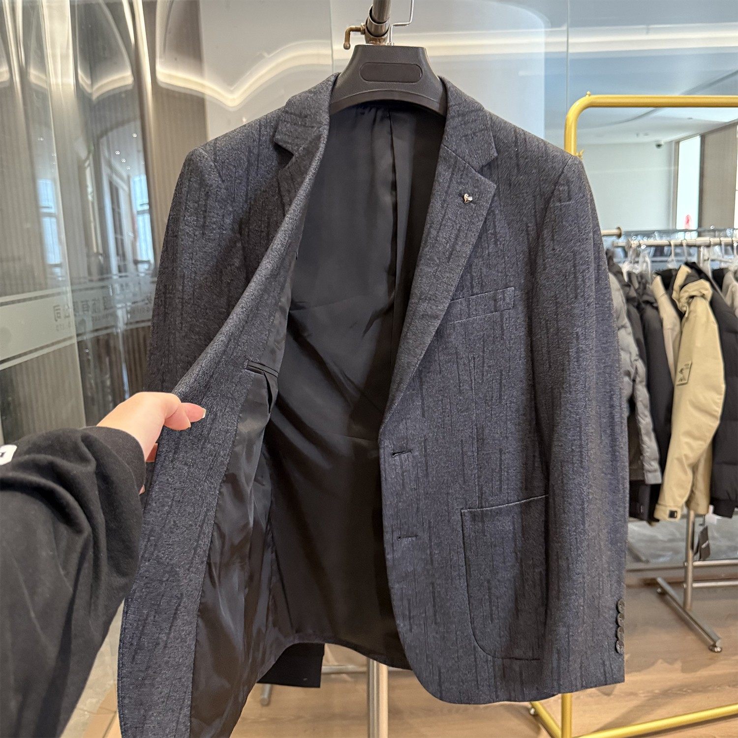 西装 花纹修身 外套男 海澜之家绒感弹力休闲西服男25秋冬新时尚 HLA