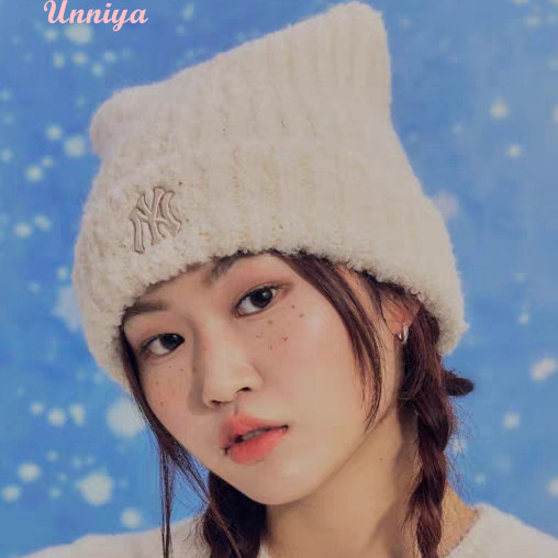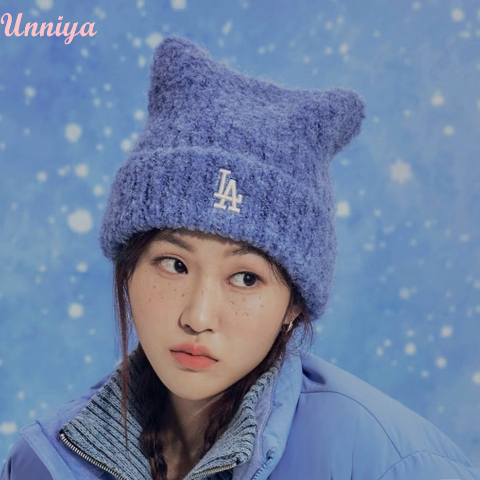 可爱百搭毛线帽藤井树同款 韩国代购 秋冬猫猫耳朵针织帽 新款 MLB