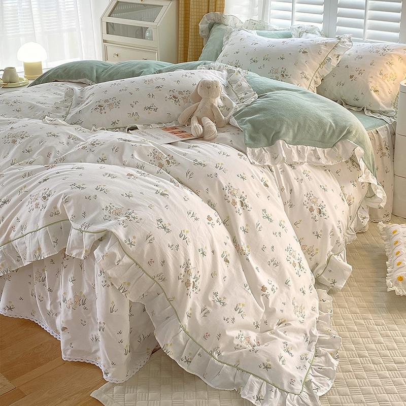 冬天棉加绒四件套牛奶绒珊瑚绒床裙款 单面绒ab面被套法兰绒公主风