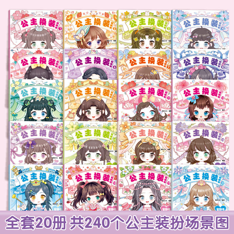 扮秀儿童益智女童化妆本贴贴画女孩3 玩具女孩变装 6岁专注力培养儿童启蒙认知书动手动脑益智玩具书 贴纸书全套20册 公主换装