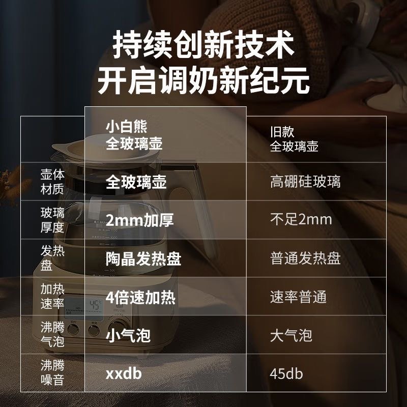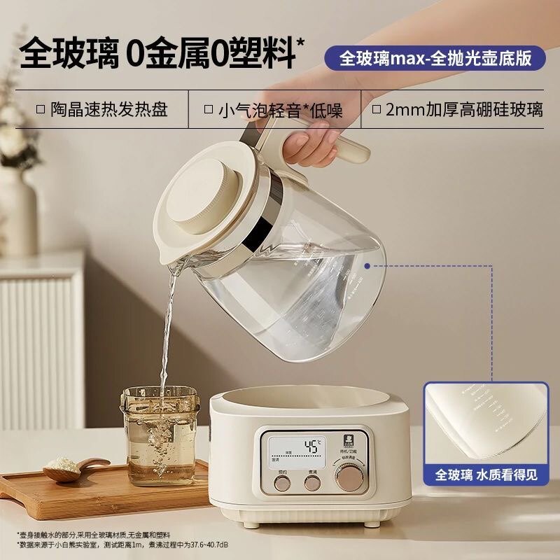 小白熊HL 无胶水 5025恒温热水壶泡烧水壶调奶器暖奶 全玻璃款