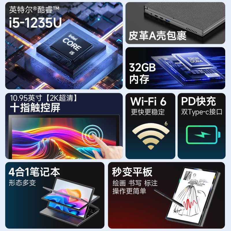 2in1 英特尔酷睿Ultra5 32G 联想ThinkPad 1T固态硬盘轻薄商务设计学生办公笔记本电脑 百亿补贴