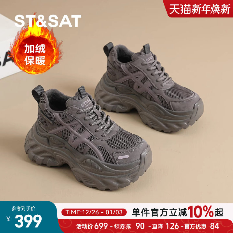 女鞋 加绒绒保暖复古休闲鞋 熊猫鞋 厚底增高运动鞋 老爹鞋 斯凯奇冬季