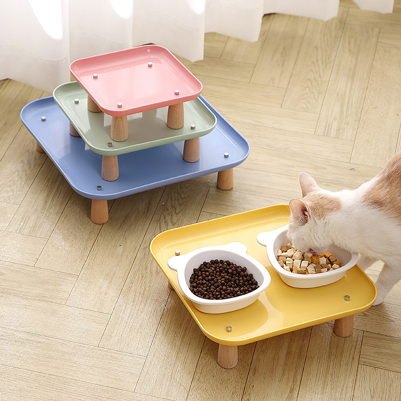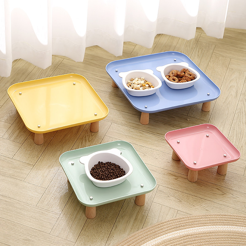 宠物方块猫碗架餐桌可拼接狗碗猫粮食盆食品级塑料增高饮水托盘