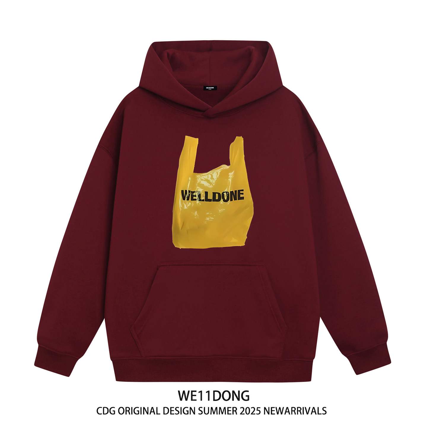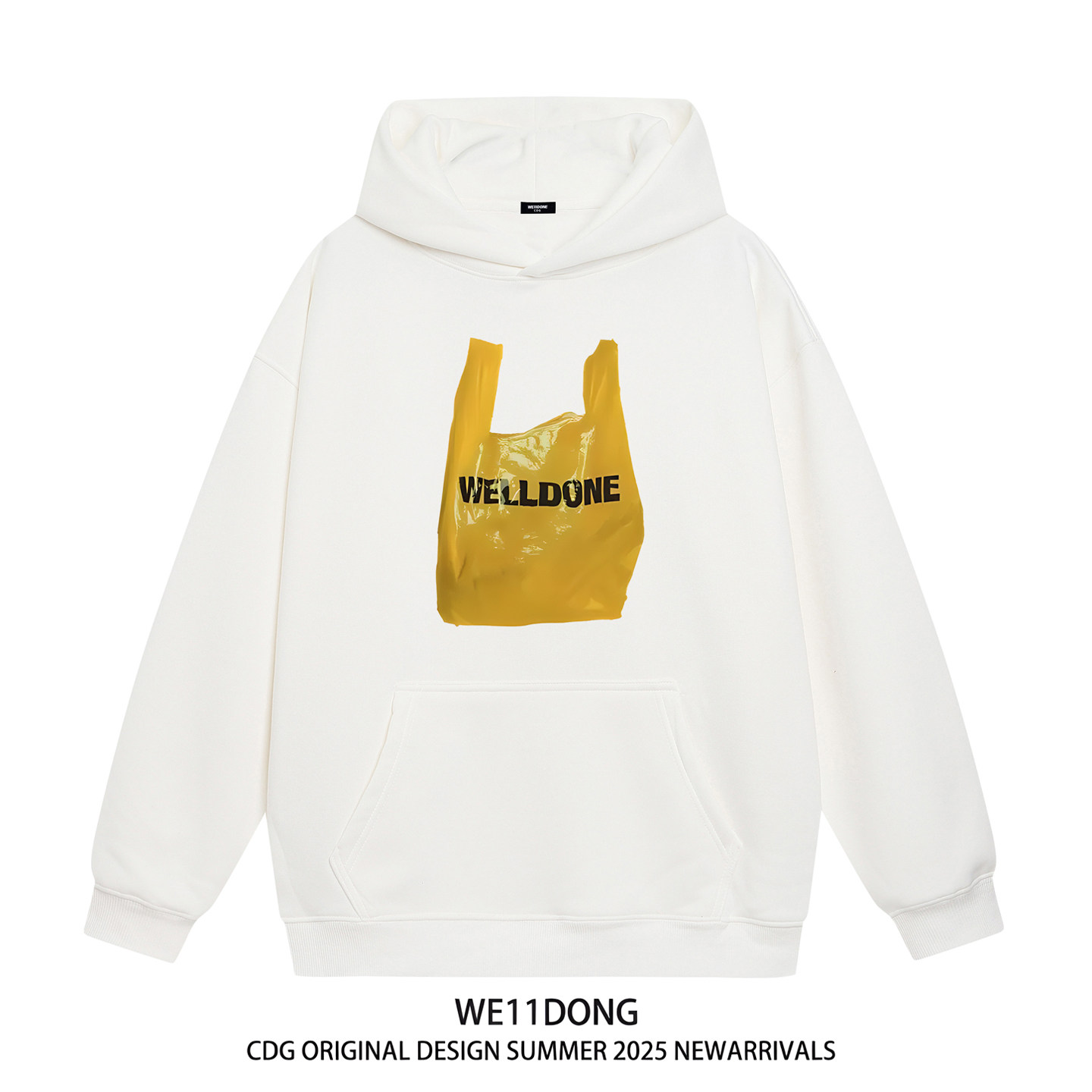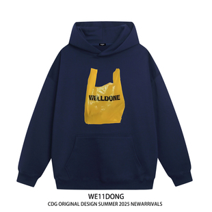 WE11DONE 宽松加绒连帽卫衣 CDG潮牌WELLDONE购物袋印花男女秋冬季